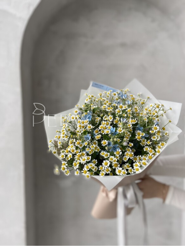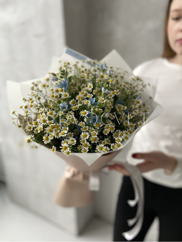 Полевой стойкий букет из танацетума и оксипеталлума для любителей лета круглый год!