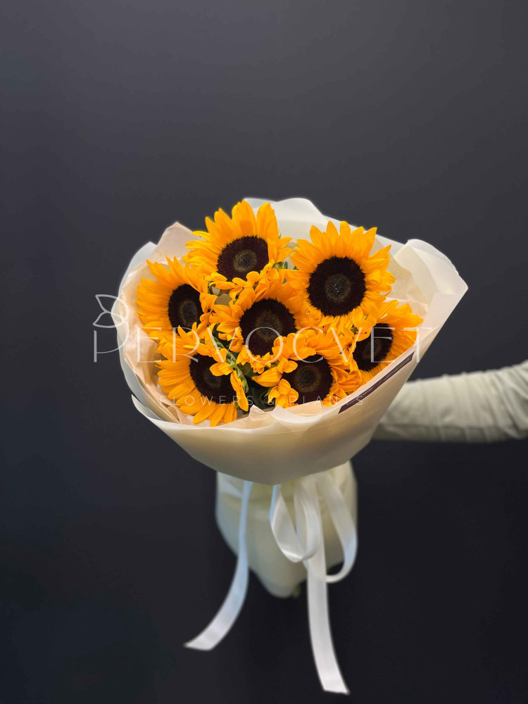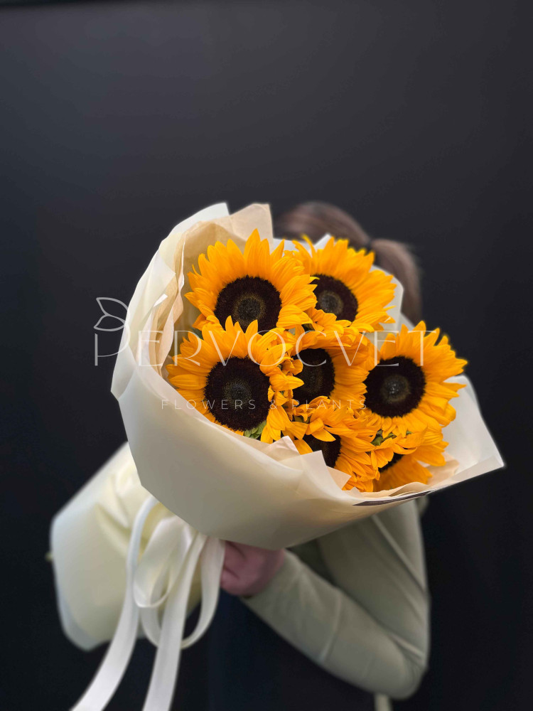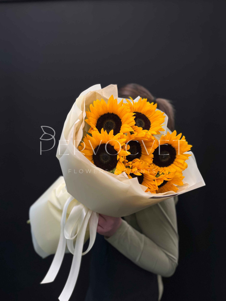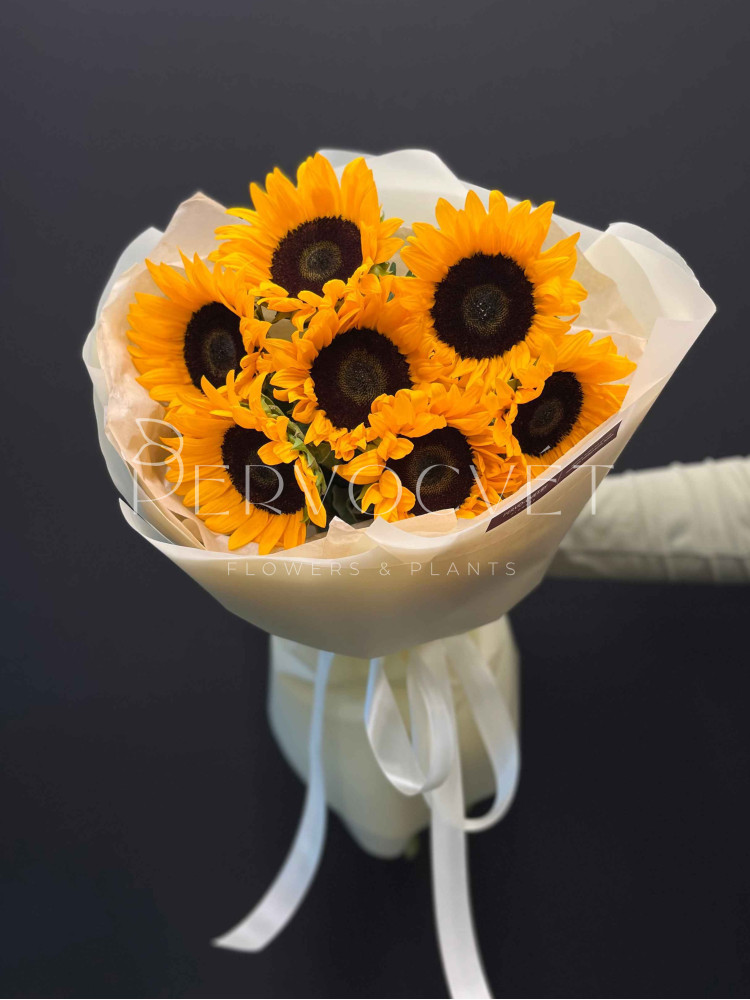 Моно-букет из ярких подсолнухов - самые желанные цветы лета! Яркие, заряженные настроением акцентные "солнышки".