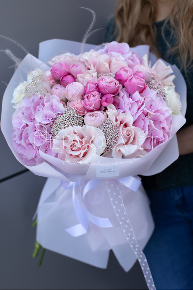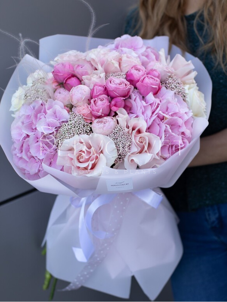 Букет XXL #78 гортензия и пионовидные розы