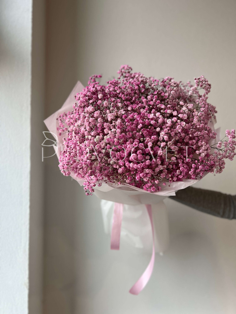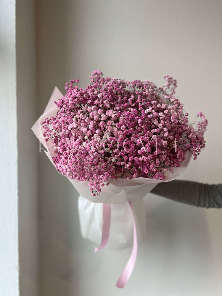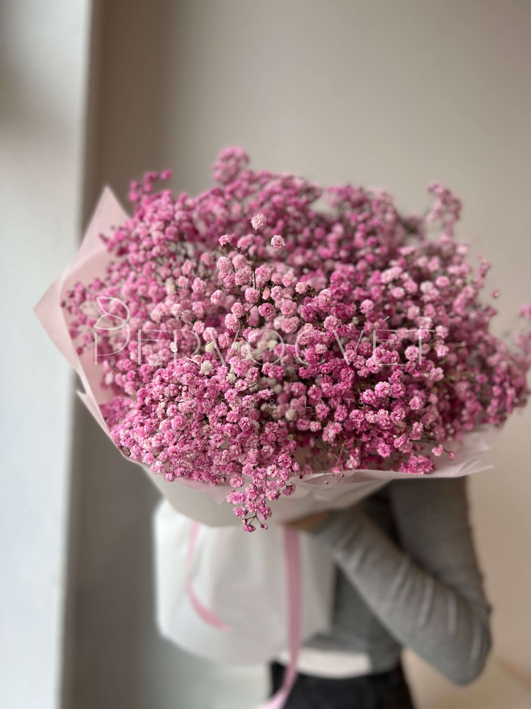 Нежная и воздушная гипсофила в розовом оттенке: большой букет самых трогательных цветов. Стойкие цветы, подходящие для любого повода.