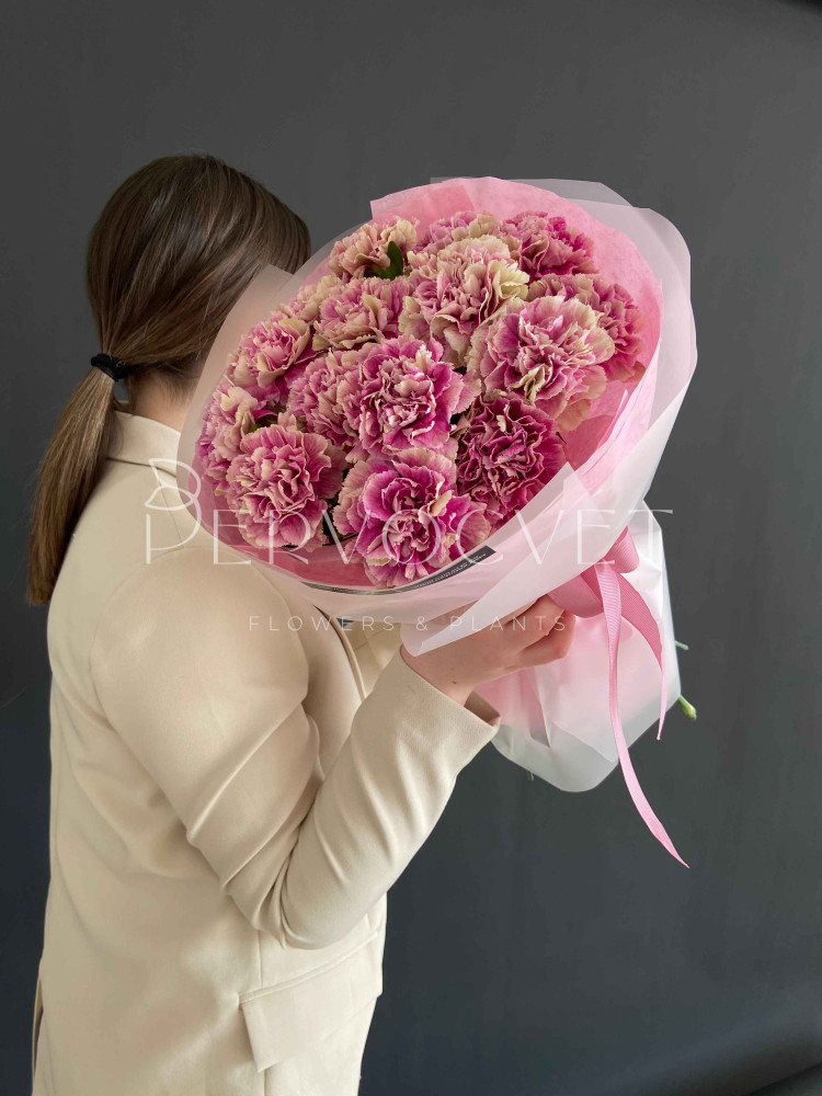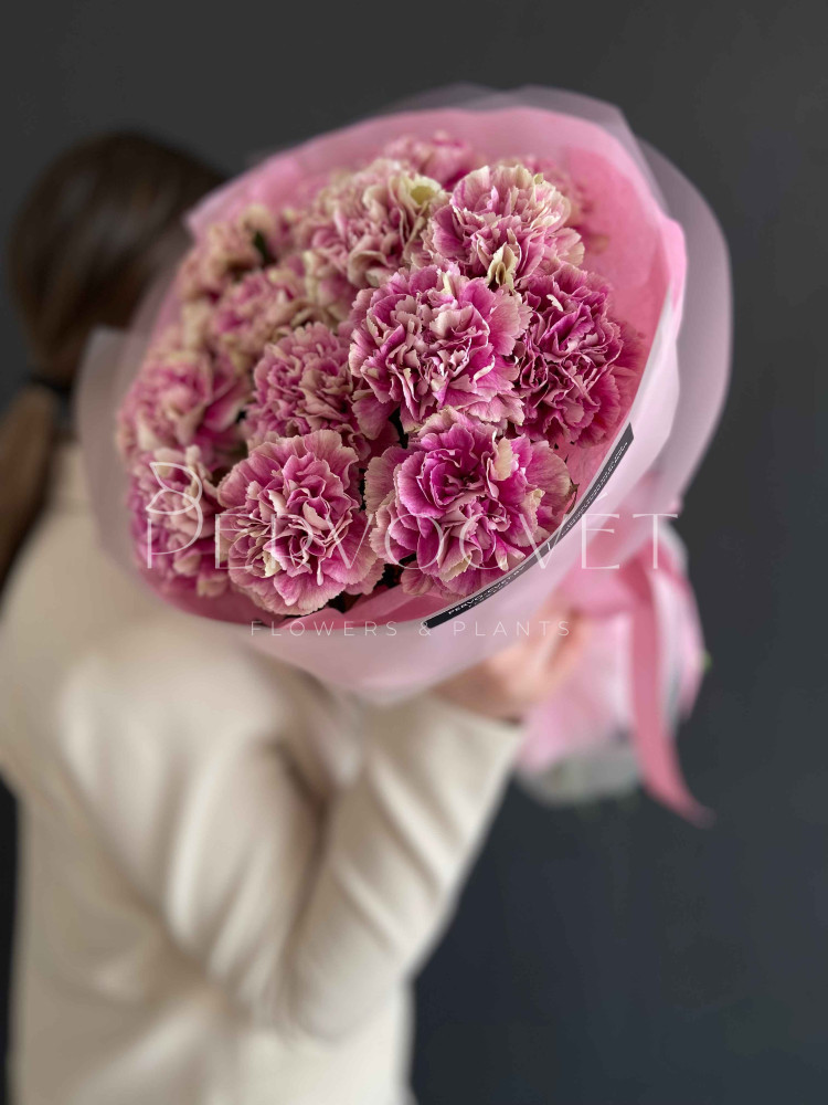 Букет из сортовых гвоздик (диантусов) интересного цвета фуксии. Идеальны для весеннего букета!
