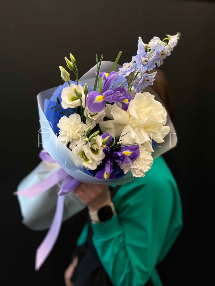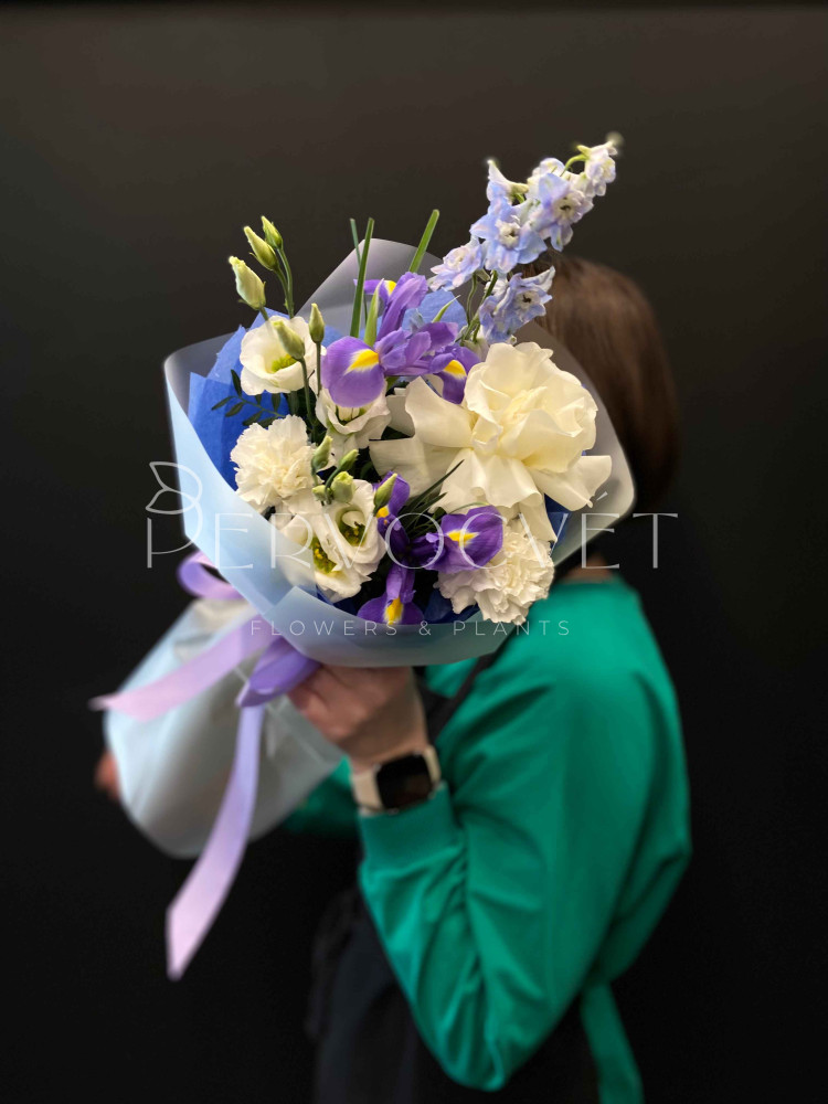 Букет #414 ирис и дельфиниум