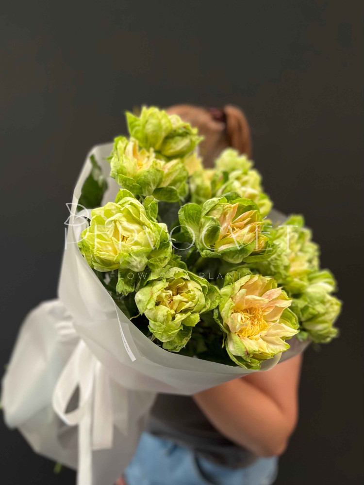 Самая акцентная роза, и по подаренному букету можно даже понять какой сейчас год, ведь во флористике эта роза олицетворяет 2024-й! Абсолютный ХИТ этого года, который взорвал Инстаграм. Удивительная роза, молочно-зеленого цвета, с двумя рядами многочисленных лепестков - акцентная роза, редкость за которой охотятся все.