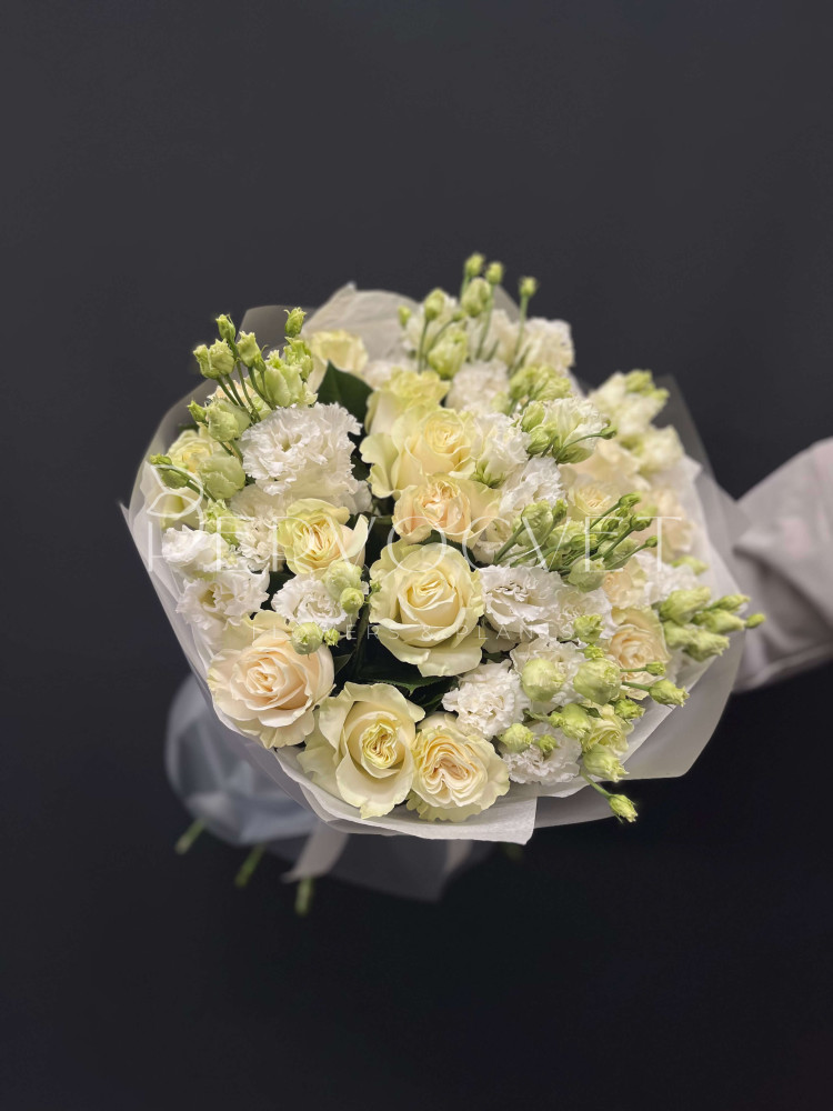 Букет #76 из белых роз и эустомы
