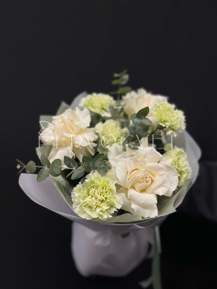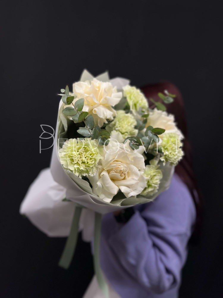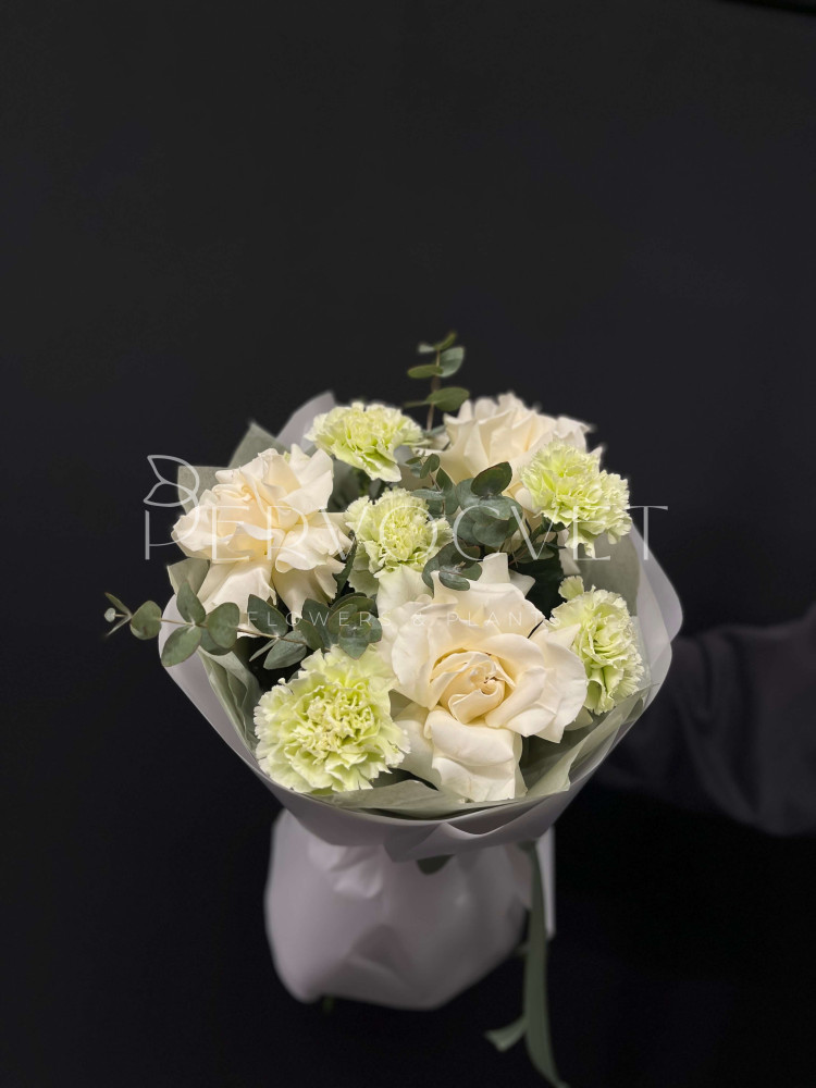 состав: французская роза, диантус, эвкалипт, фисташка (тех.зелень)