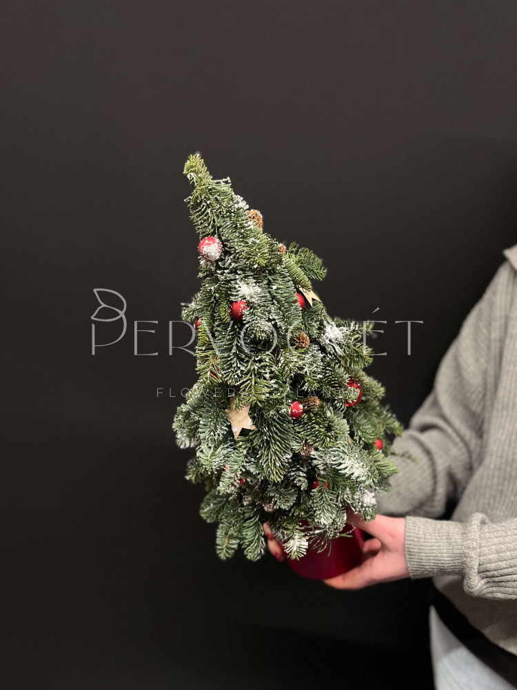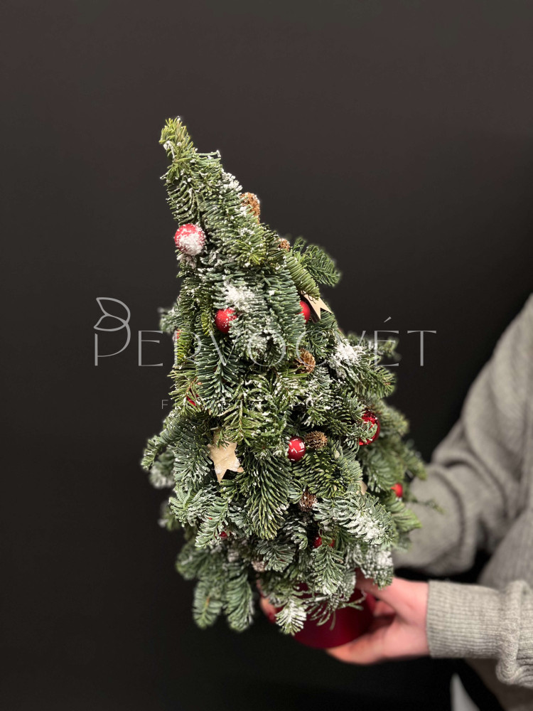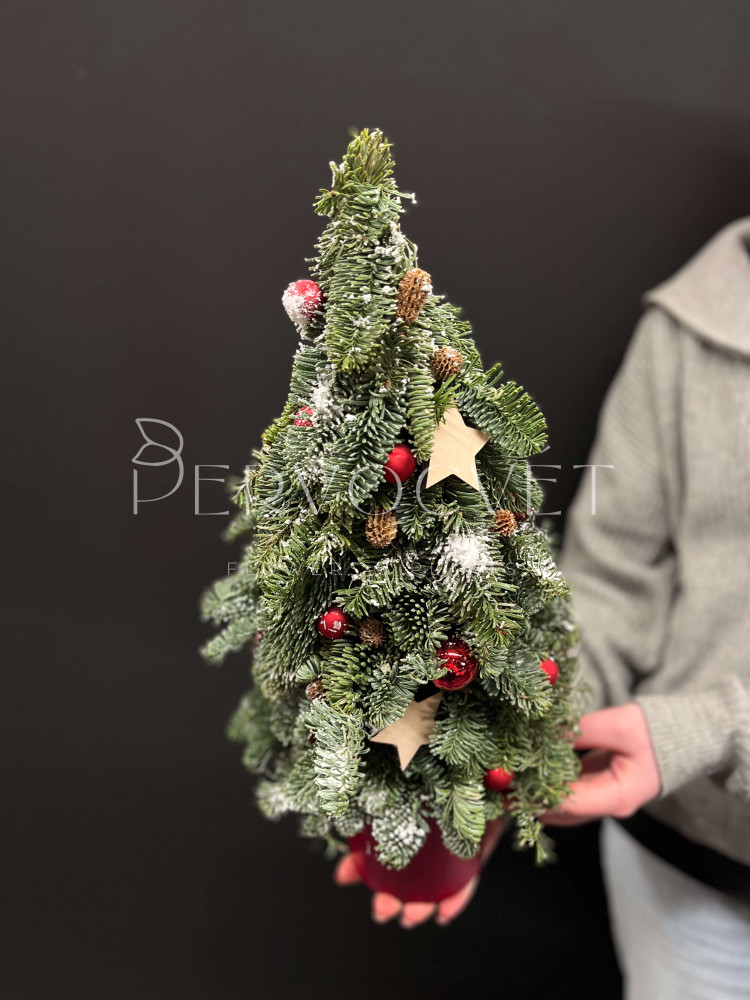 Елочка из нобилиса 50 см #91 с красным декором