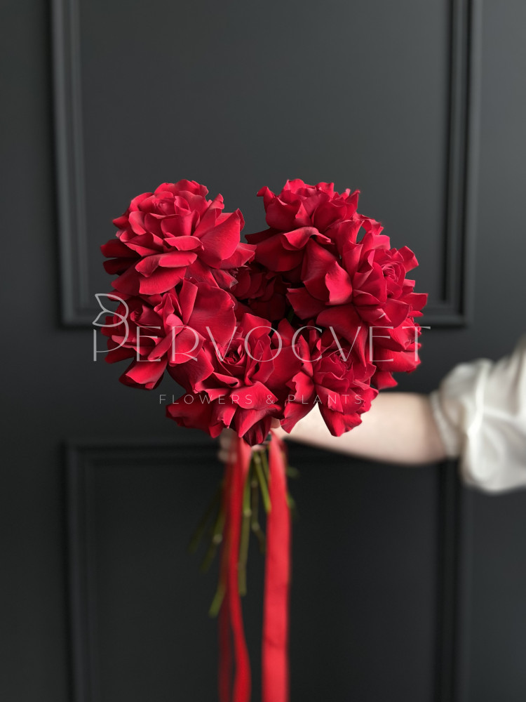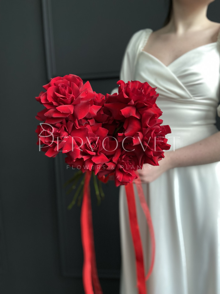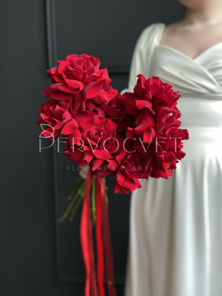Свадебный букет из таких уже полюбившихся французских роз! Эффектный и трендовый вариант букета невесты! Может быть выполнен в различных оттенках (белый, айвори, персик, красный, розовый, фиолетовый, )