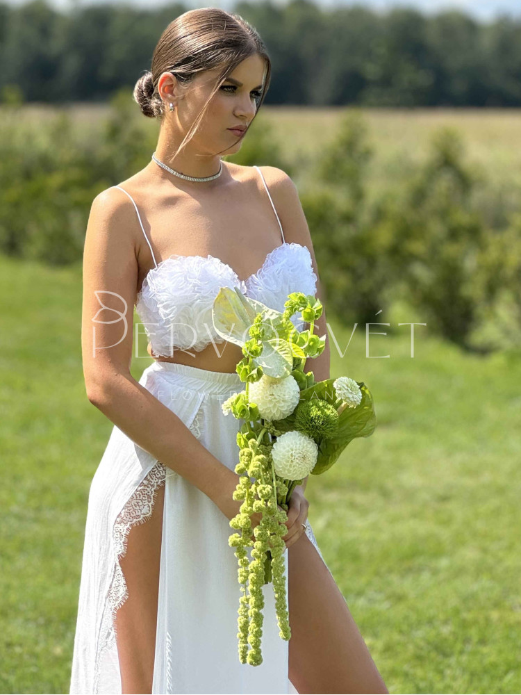 - Дополнительно у нас можно заказать бутоньерку для жениха, свидетеля, букет-дублер, букеты для подружек невесты, украшения на руку и в прическу из живых цветов.