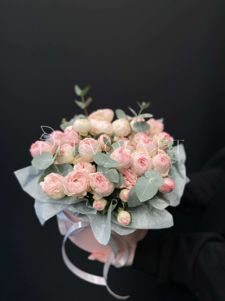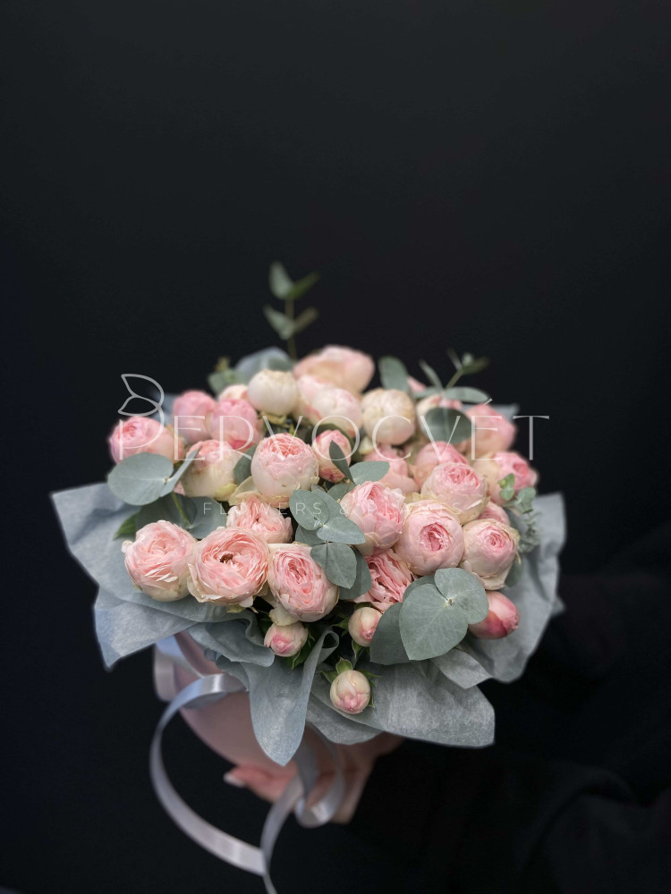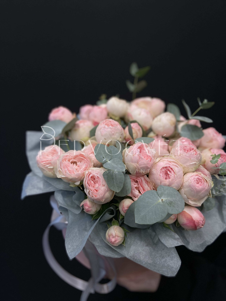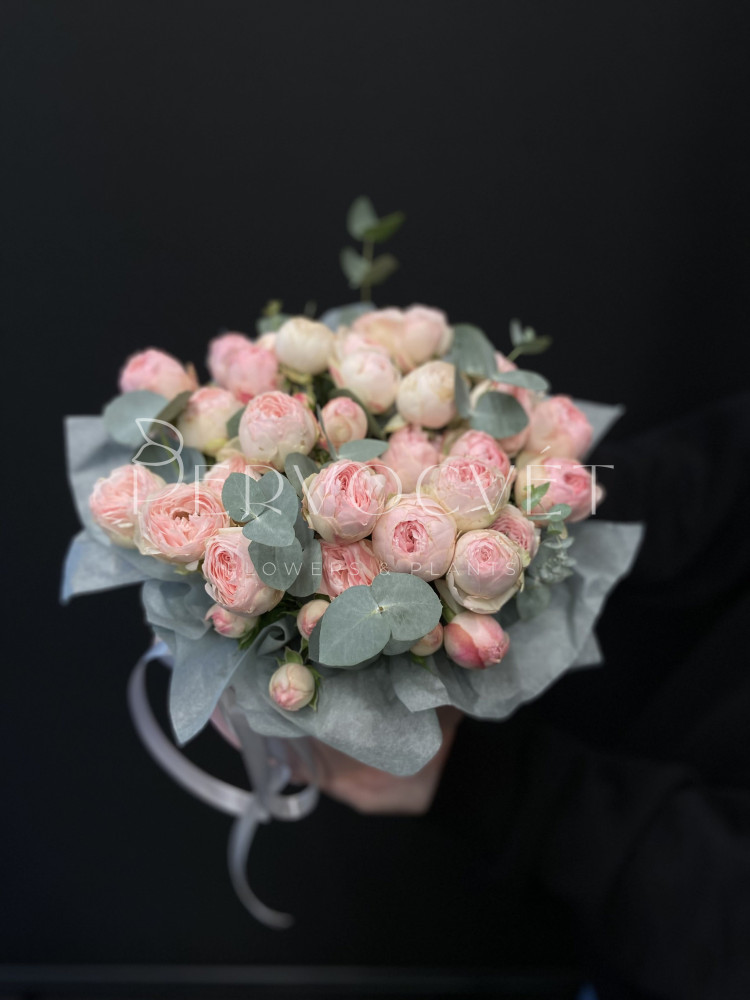 состав: пионовидная роза Менсвилд Парк, эвкалипт