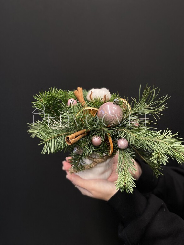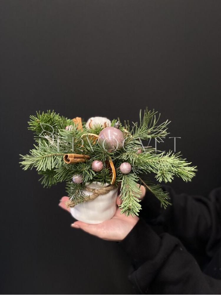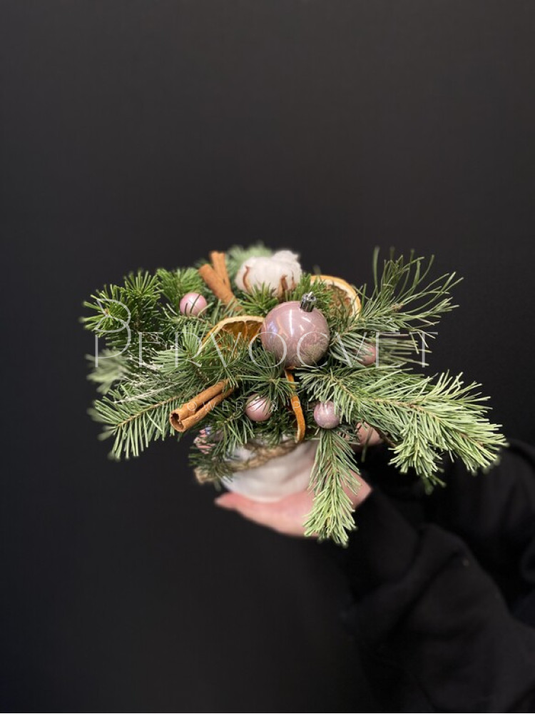 Новогодняя композиция в кашпо #57