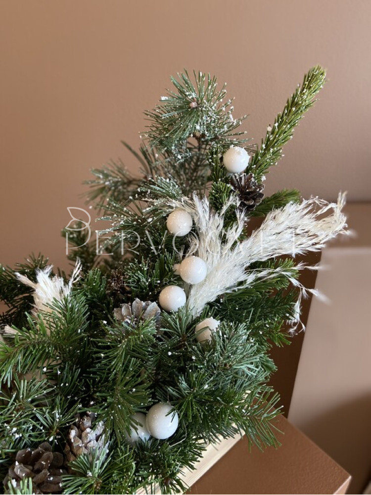 состав: натуральная пихта Нобилис, Кониферн, камыш, хлопок, шарики, шишки, снег