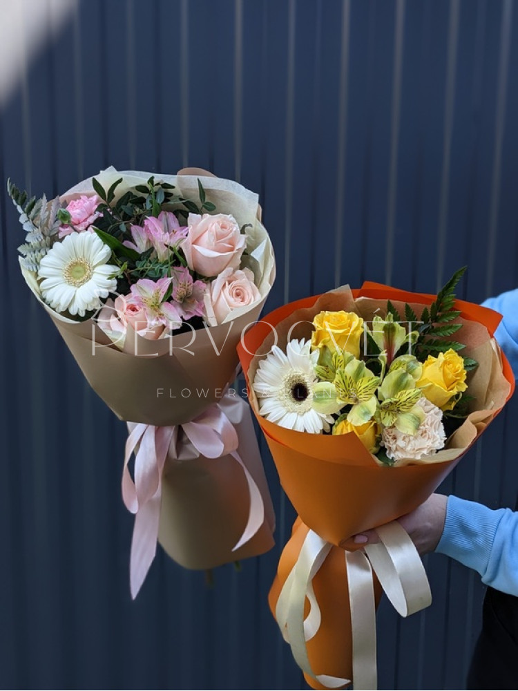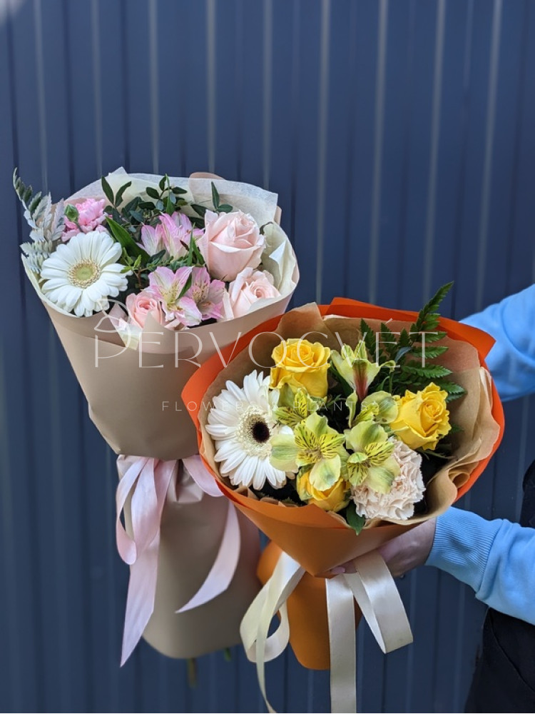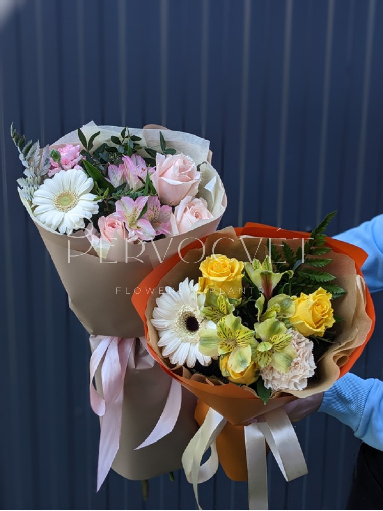 - СРЕДНИЙ - роза 7, альстромерия 3, гербера 2, гвоздика 2, зелень