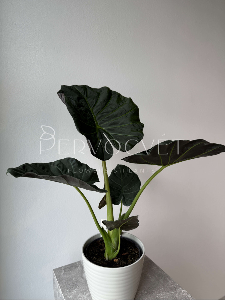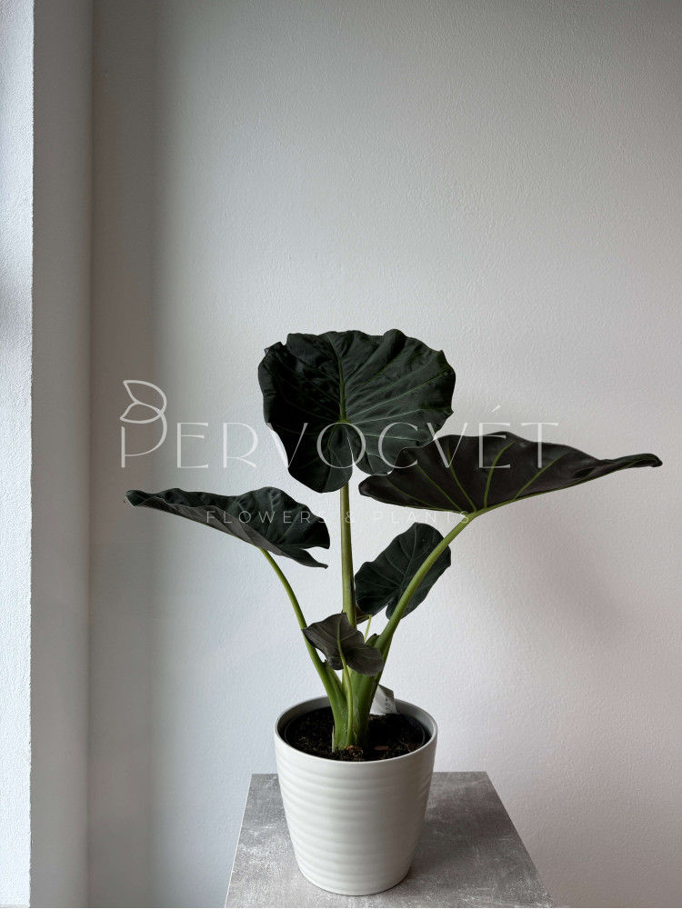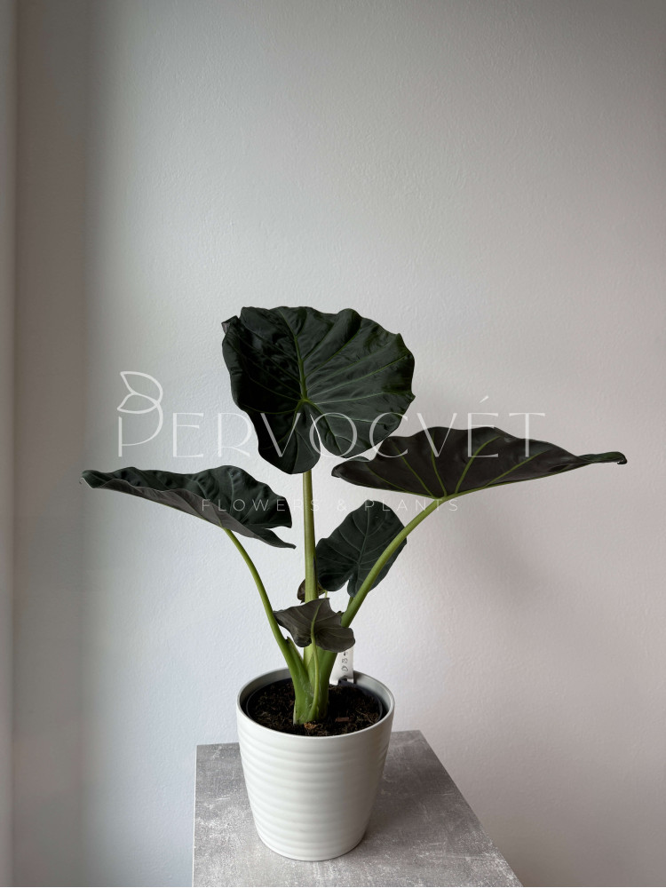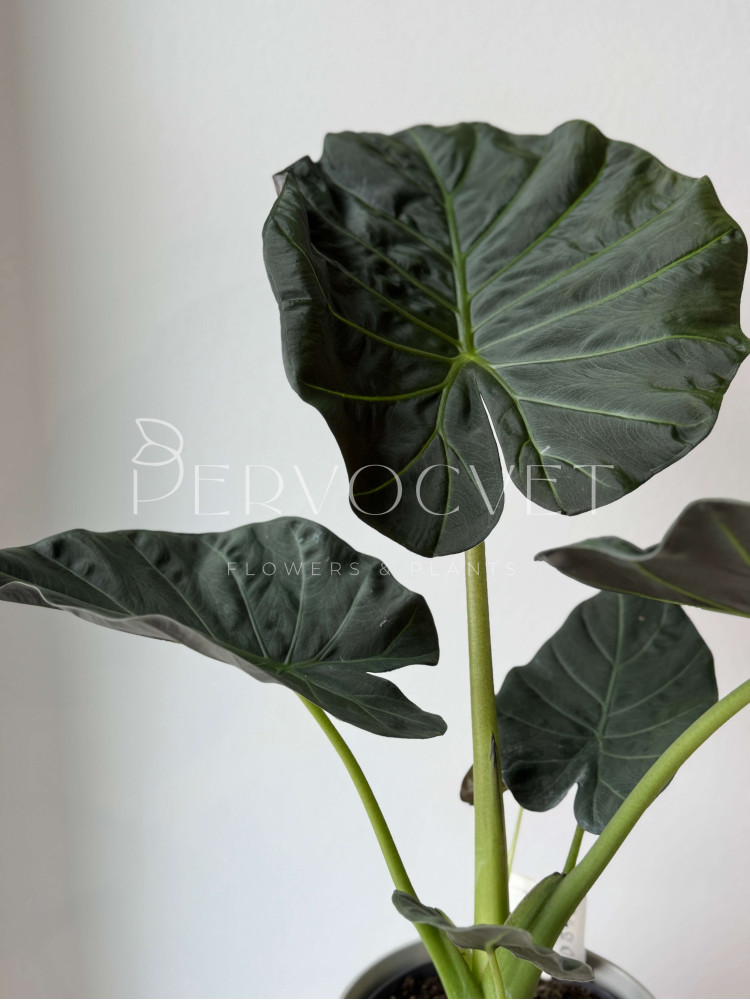 Алоказия Регал Шилдс - редкий сорт алоказии, крупный коллекционный экземпляр. Эффектный размер и крупные листовые пластины, которые могут достигать 70 см в длину, никого не оставят равнодушным. Такое растение украсит любое пространство ! Крупный ствол и темно-зеленые листовые пластины, которые отличаются выраженным рисунком жилок, верхняя сторона которых с металлическим серым оттенком, а нижняя - коричневым или бордовым. Регал вырастает до 1.8-2 метров в высоту в домашних условиях, поэтому вам нужно позаботиться о достаточности пространства. Подробнее про уход читайте ниже.