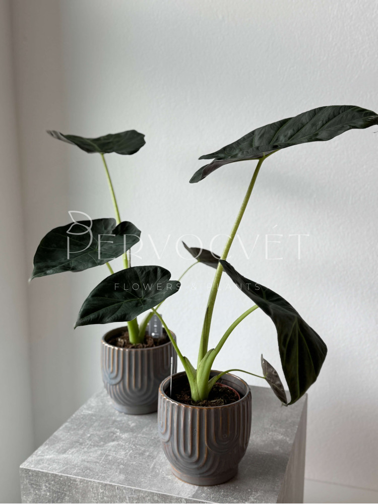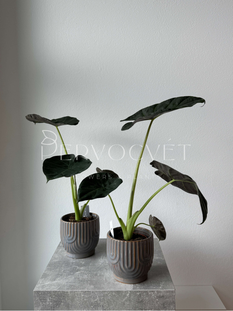 Алоказия Регал Шилдс - редкий сорт алоказии, крупный коллекционный экземпляр. Эффектный размер и крупные листовые пластины, которые могут достигать 70 см в длину, никого не оставят равнодушным. Такое растение украсит любое пространство ! Крупный ствол и темно-зеленые листовые пластины, которые отличаются выраженным рисунком жилок, верхняя сторона которых с металлическим серым оттенком, а нижняя - коричневым или бордовым. Регал вырастает до 1.8-2 метров в высоту в домашних условиях, поэтому вам нужно позаботиться о достаточности пространства. Подробнее про уход читайте ниже.