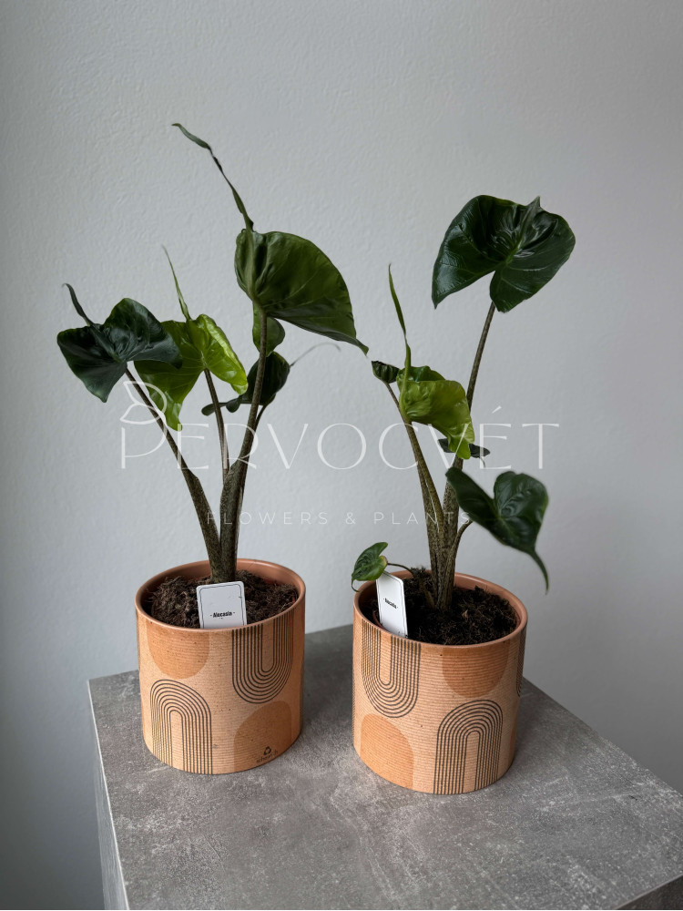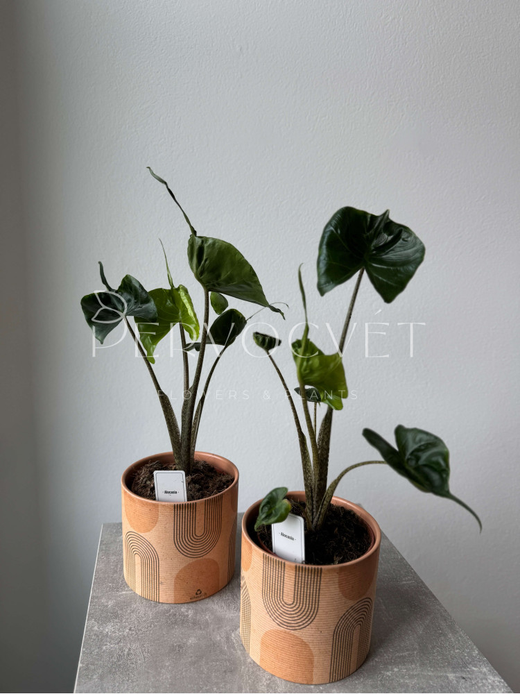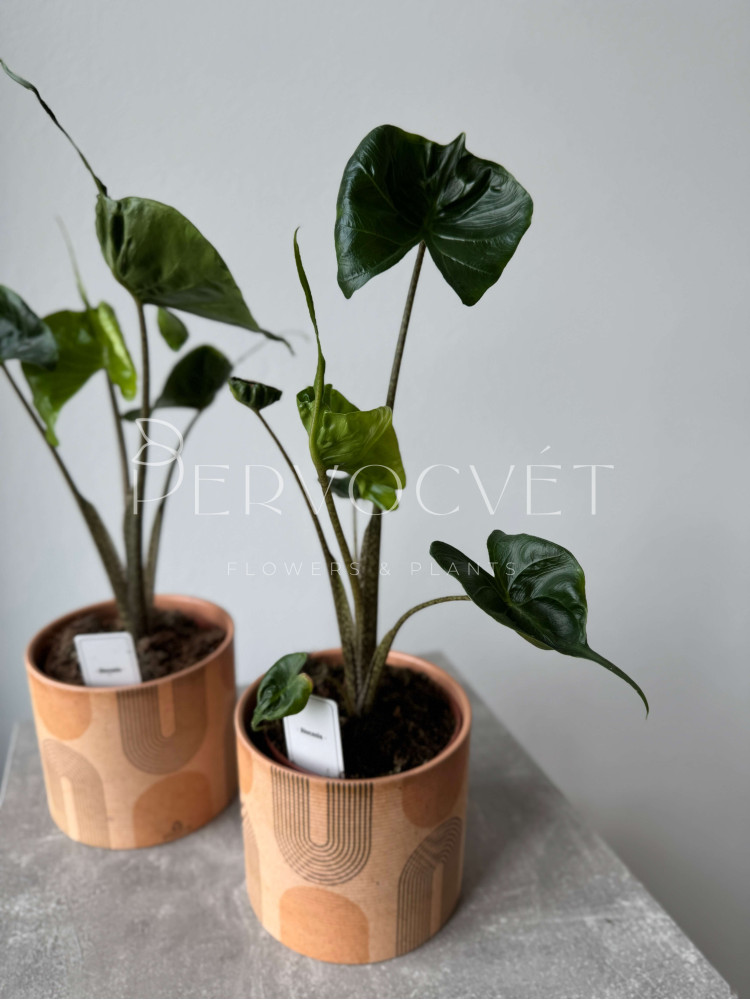 Алоказия Макрориза Стингрей, или Скат - одна из самых экзотических алоказий, если вы обратите внимание на стебли растения, то поймете - это родственник Алоказии Зебрина. Стингрей - естественная мутация, с белым узором, но слегка отличным от Зебрины и других алоказий, а лист имеет сердцевидную форму с длинным заостренным отростком. Для этих алоказий очень важен свет (только непрямые солнечные лучи) и постоянная повышенная влажность. Больше про уход читайте ниже.