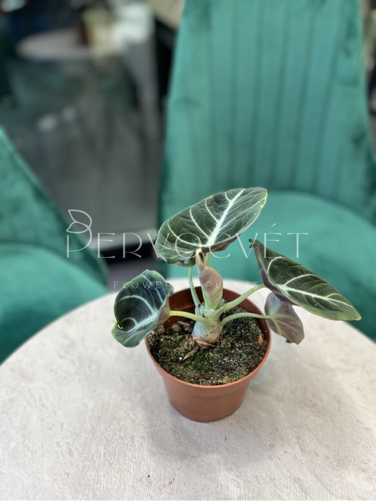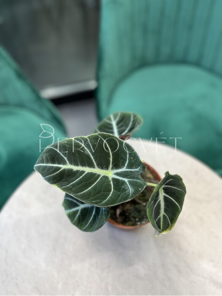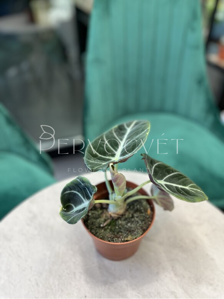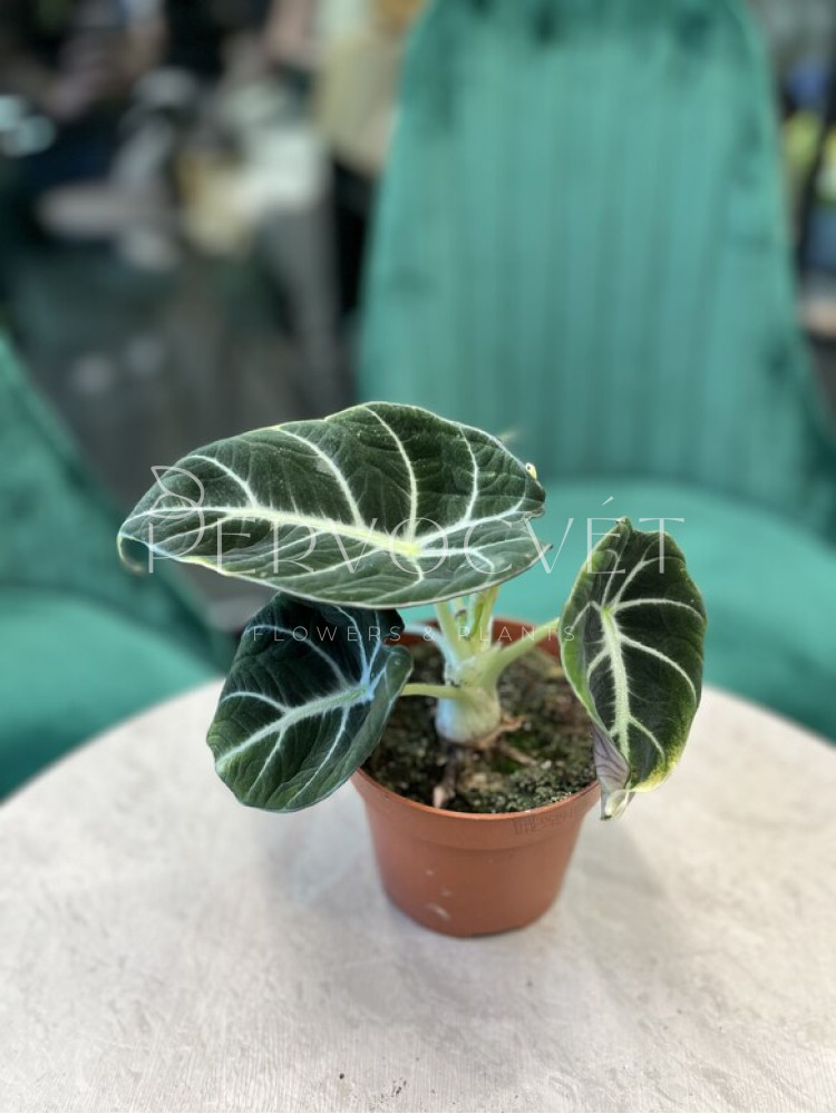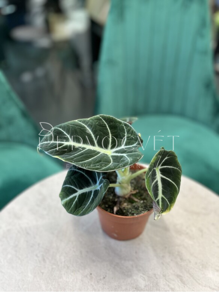 Алоказия Блек Вельвет (или Черный бархат) - декоративно-лиственное растение с крупными бархатными листьями темно-зеленого цвета с серебристыми жилками. Шикарный экземпляр редкого растения для особенных ценителей!