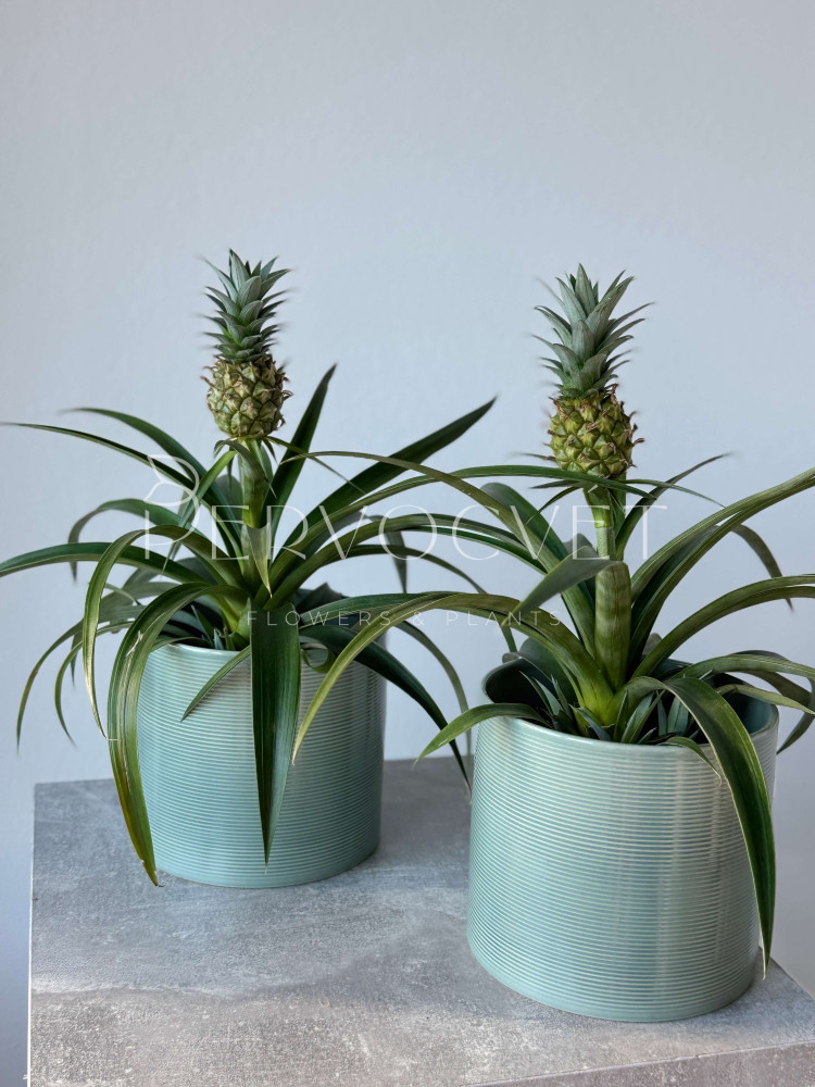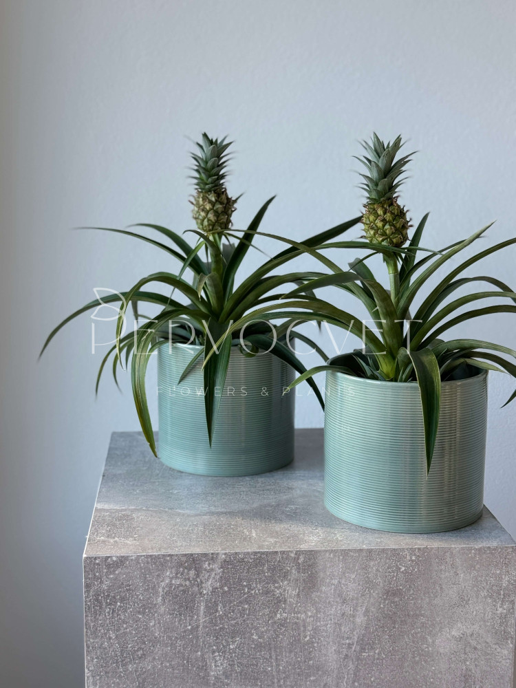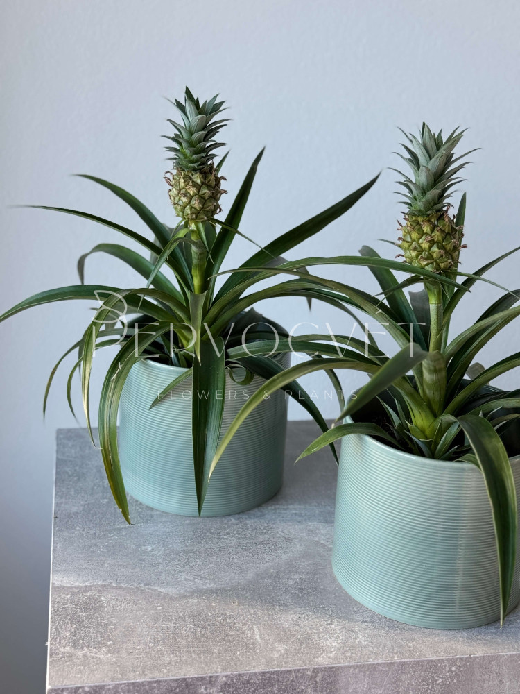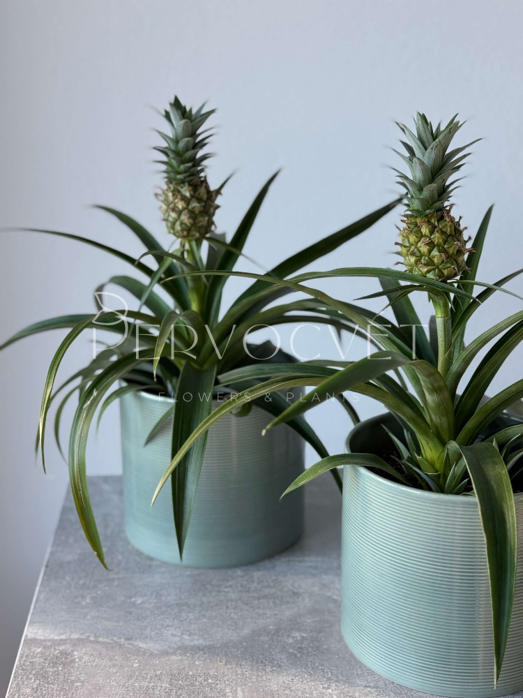 Ананас Хохлатый - представитель семейства Бромелиевые, в домашних условиях ананас достигает 70 см в высоту. Плод съедобный и обладает эффектным внешним видом. В уходе прост и неприхотлив.