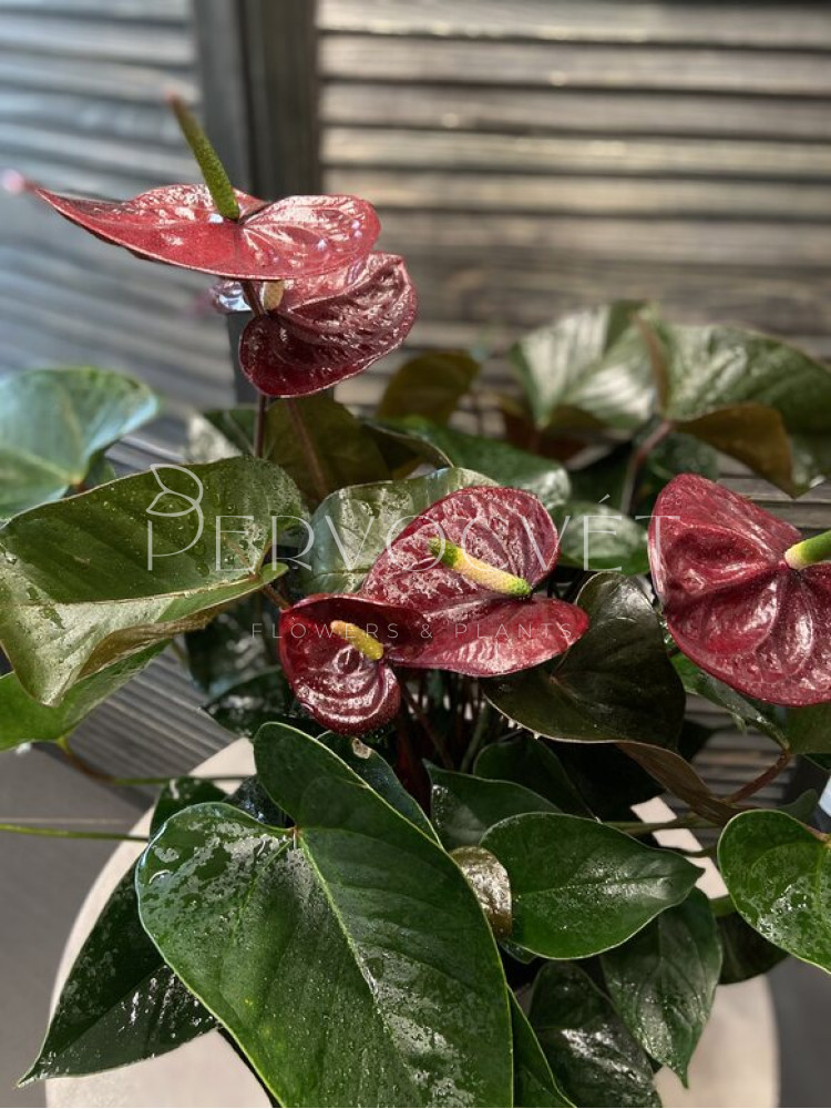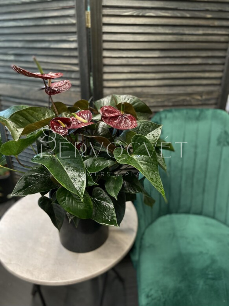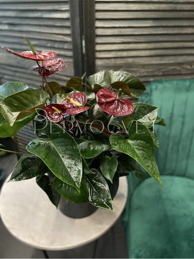 Антуриум Андре - вечнозеленый многолетник, родиной которого являются тропики Южной Америки. Неприхотливый эпифит с ярко-зелеными листьями, многие из сортов которого отличаются длительностью цветения (от 1 до 12 месяцев) и палитрой красок с ярким прицветником обволакивающим грациозно выгнутый початок. Сорт Блек Лав (Черная любовь) отличается темно-коричневым цветом прицветников с вишневым оттенком.