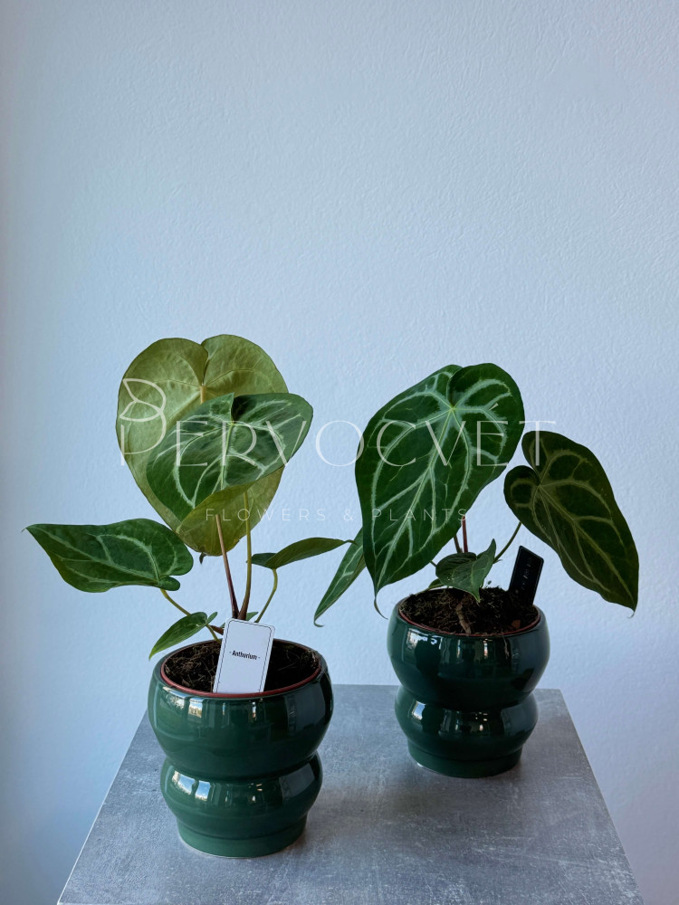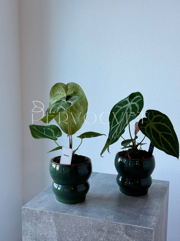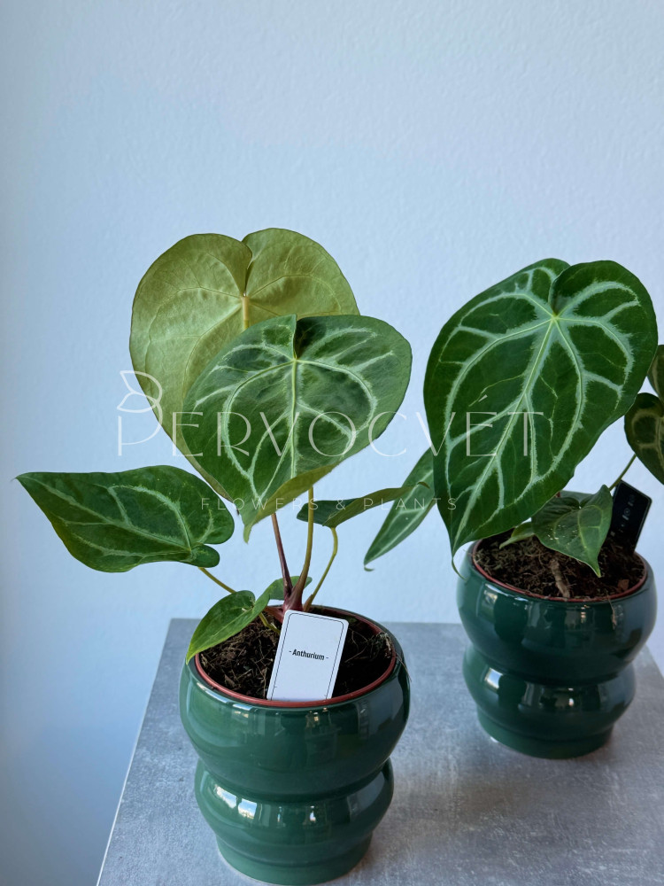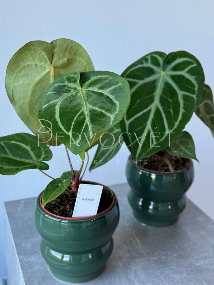 Горшок подбирайте из натуральных пористых материалов, влаго- и воздухопроницаемых: терракота, керамика, глина. Тесные = по размеру корневой системы, не "на вырост". Считается что классическая конусовидная форма, с сужением книзу - идеальна для декоративно-лиственных антуриумов. Также можно выращивать растение в двух горшках: прозрачный пластиковый горшок, в котором непосредственно "сидит" растение, и декоративный горшок, который в свою очередь будет сберегать тепло - таким образом вы сможете контролировать состояние корней и эффективность полива. Пересадку лучше всего запланировать с марта по сентябрь, и только в случае если корни заполнили весь грунт и нужен горшок побольше. Субстрат должен быть рыхлый, пористый, с влагоемкими компонентами. Вы можете использовать готовую смесь для орхидей, но добавить в нее глиняный гранулят, кокос. Идеальный грунт: 1:1:1 из торфа или кокоса, смеси для орхидей и агроперлита.