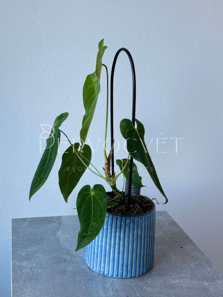 Горшок подбирайте из натуральных пористых материалов, влаго- и воздухопроницаемых: терракота, керамика, глина. Тесные = по размеру корневой системы, не "на вырост". Считается что классическая конусовидная форма, с сужением книзу - идеальна для декоративно-лиственных антуриумов. Также можно выращивать растение в двух горшках: прозрачный пластиковый горшок, в котором непосредственно "сидит" растение, и декоративный горшок, который в свою очередь будет сберегать тепло - таким образом вы сможете контролировать состояние корней и эффективность полива. Пересадку лучше всего запланировать на весну, только в случае если корни заполнили весь грунт и нужен горшок побольше. Молодые растения отсаживают от взрослого как можно раньше. Субстрат должен быть рыхлый, пористый, с влагоемкими компонентами. Вы можете использовать готовую смесь для орхидей, но добавить в нее глиняный гранулят, кокос. Идеальный грунт: 1:1:1 из торфа или кокоса, смеси для орхидей и агроперлита.