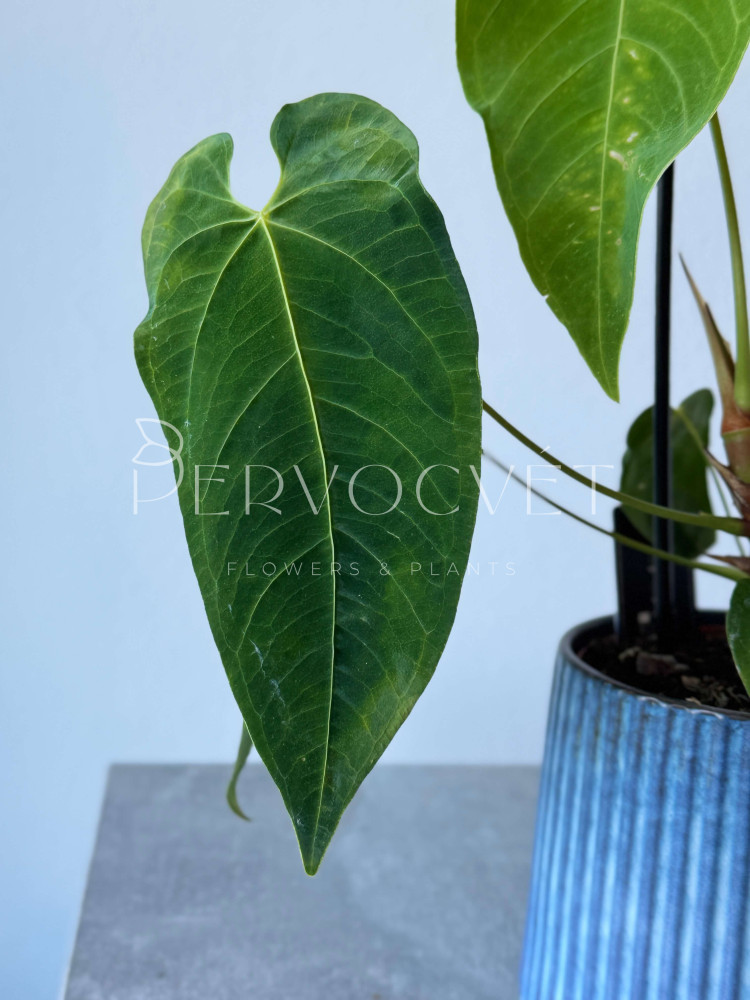 Антуриум Марморатум - коллекционный и редкий сорт декоративно-лиственных антуриумов. Сорт длинными сердцевидными листьями, чья длина превышает ширину примерно в 3 раза. Листья бархатистые, насыщенно зеленые с неявным рисунком жилок. Растение часто путают с филодендронами, из-за уникального размера листьев. В природе встречается в тропиках Колумбии и Эквадора, поэтому ему необходимы определенные условия для развития - читайте ниже про уход.