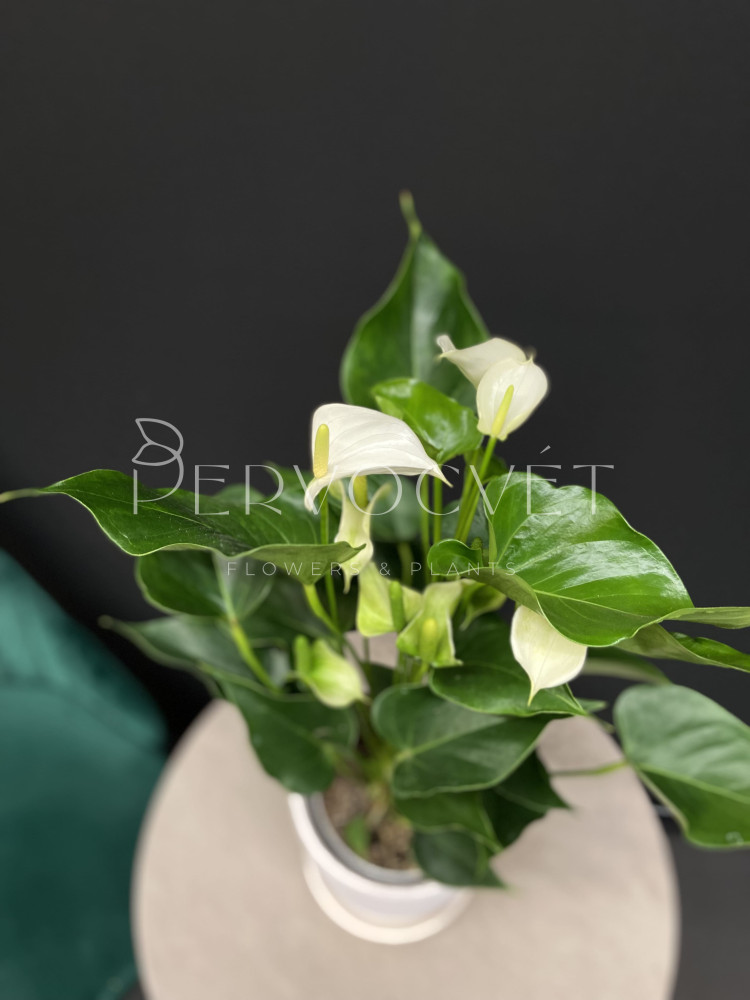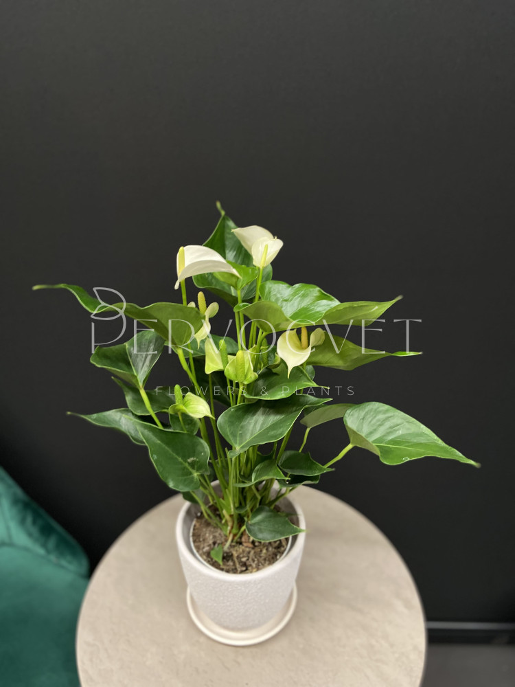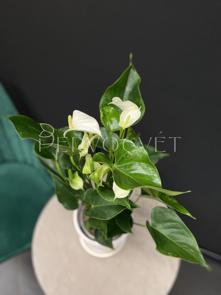 Антуриум Андре - вечнозеленый многолетник, родиной которого являются тропики Южной Америки. Неприхотливый эпифит с ярко-зелеными листьями, многие из сортов которого отличаются длительностью цветения (от 1 до 12 месяцев) и палитрой красок с ярким прицветником обволакивающим грациозно выгнутый початок. Антуриум Андре Чемпион включает в себя только два подсорта: Белый и Розовый. Чемпионы подходят для маленьких помещений, благодаря компактности, цветут обильно круглый год.