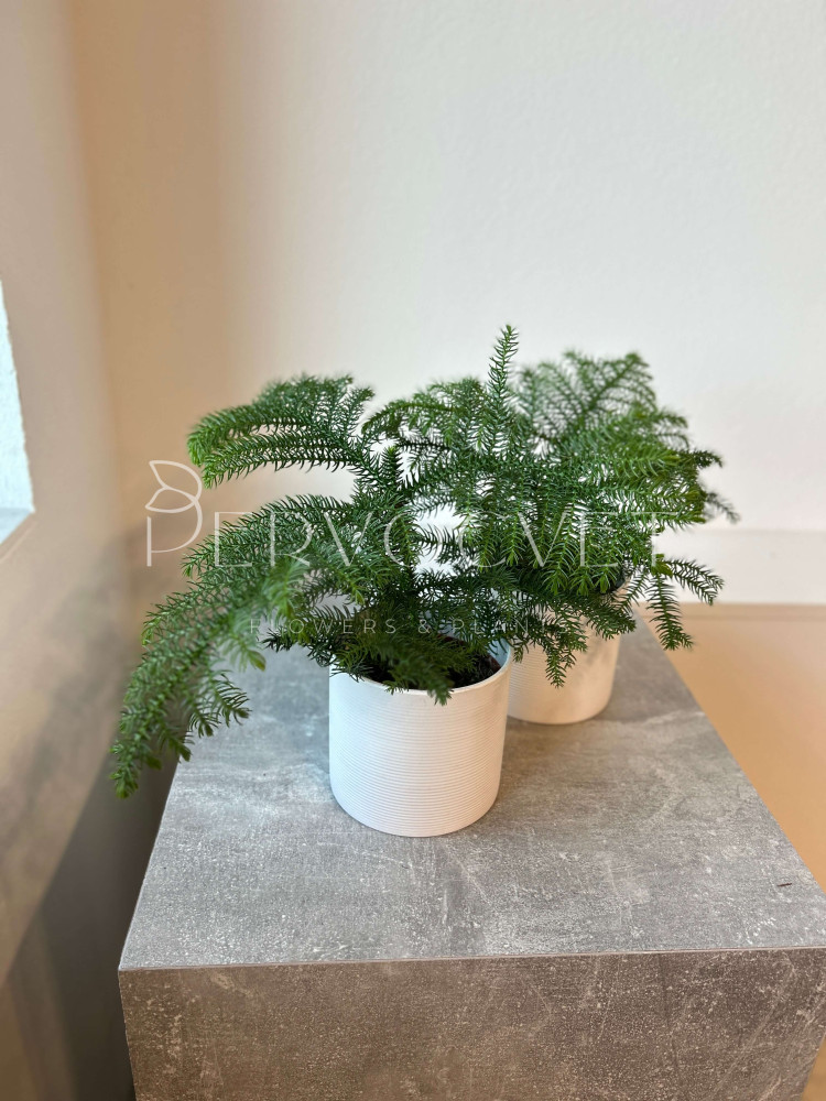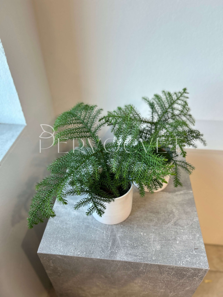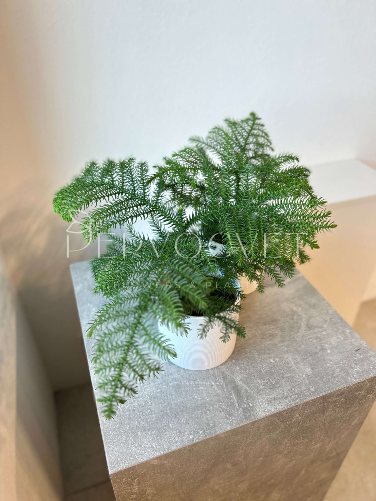 Араукария (комнатная ель) - одно из немногих хвойных растений, которые можно выращивать в домашних условиях. Родина растения - маленький остров Норфолк, влажные субтропические леса. Растение имеет достаточно развитую пышную хвою, которая больше напоминает листья, а не хвоинки.