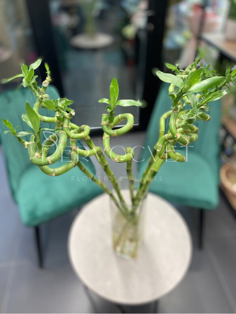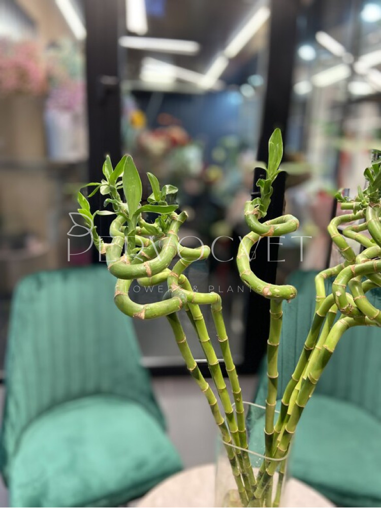 Драцена Сандера - растение из семейства Спаржевых, известное всем как комнатный бамбук, однако это не совсем тот японский (китайский) бамбук, о котором мы сразу можем подумать, главное отличие - мясистый, а не полый стебель. Сандера всегда выглядит свежо и экологично, благодаря салатовому цвету листьев и зеленому стволу, который можно закручивать, путем смены положения растения относительно света и горизонтального уровня, или переплетать несколько стволов между собой.