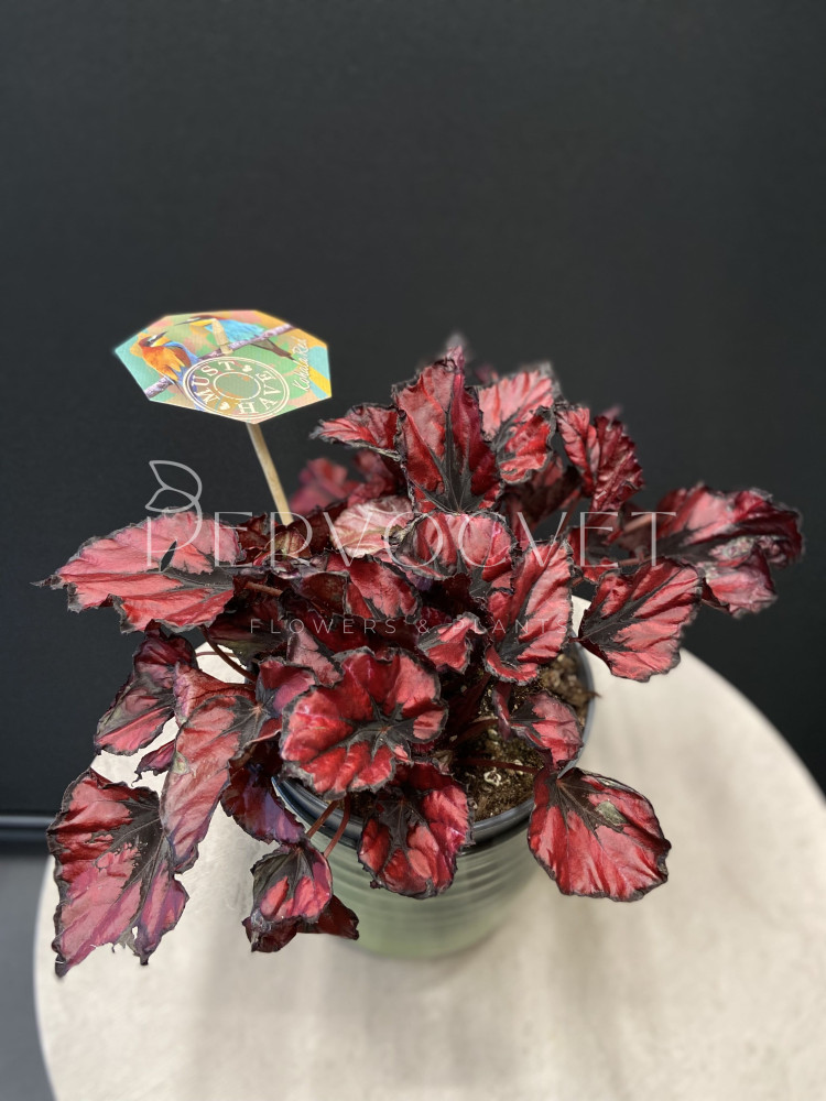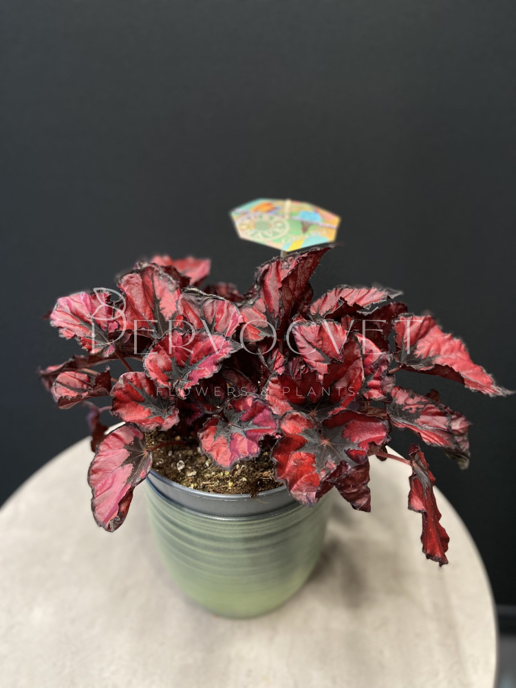 Бегония Белиф - группа декоративно-лиственных бегоний. Red kiss, Красный поцелуй - поразительно красивый сорт с красно-черными листьями. При этом абсолютно неприхотливый сорт, который периодически радует цветами.