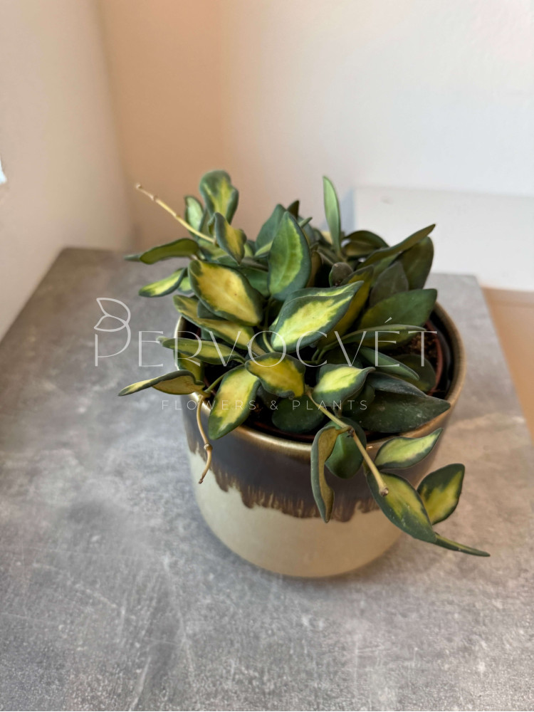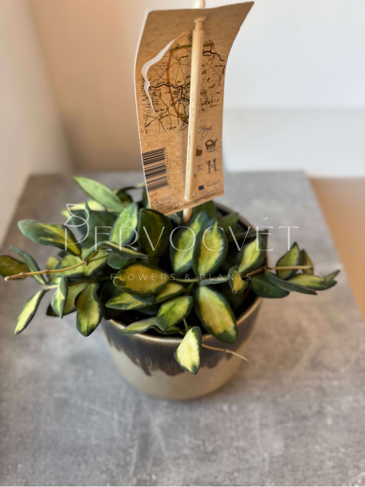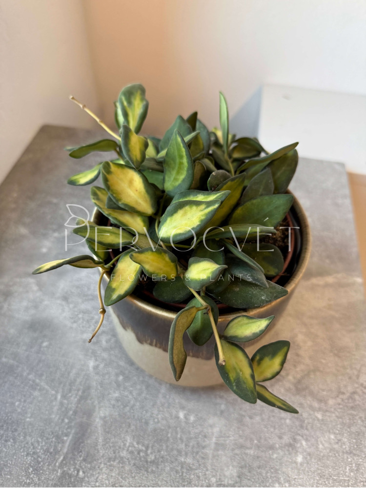 Хойя Буртони Вариегата - коллекцинный экземпляр редкого сорта хойи, восковые листья с красивой кремовой вариегатностью. Каждое растение уникально благодаря рисунку. Ценится за декоративность и ароматное цветение, и особенно - за ампельный рост! Идеальное растение-украшение для создания "зеленого" ниспадающего акцента. Про уход читайте ниже.