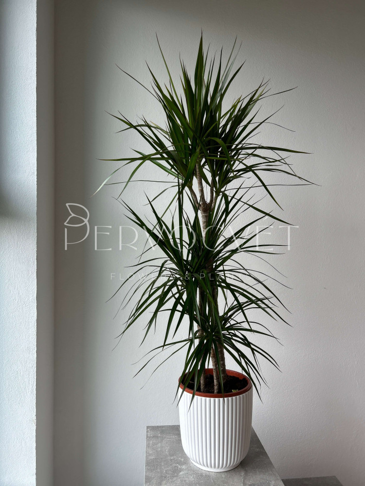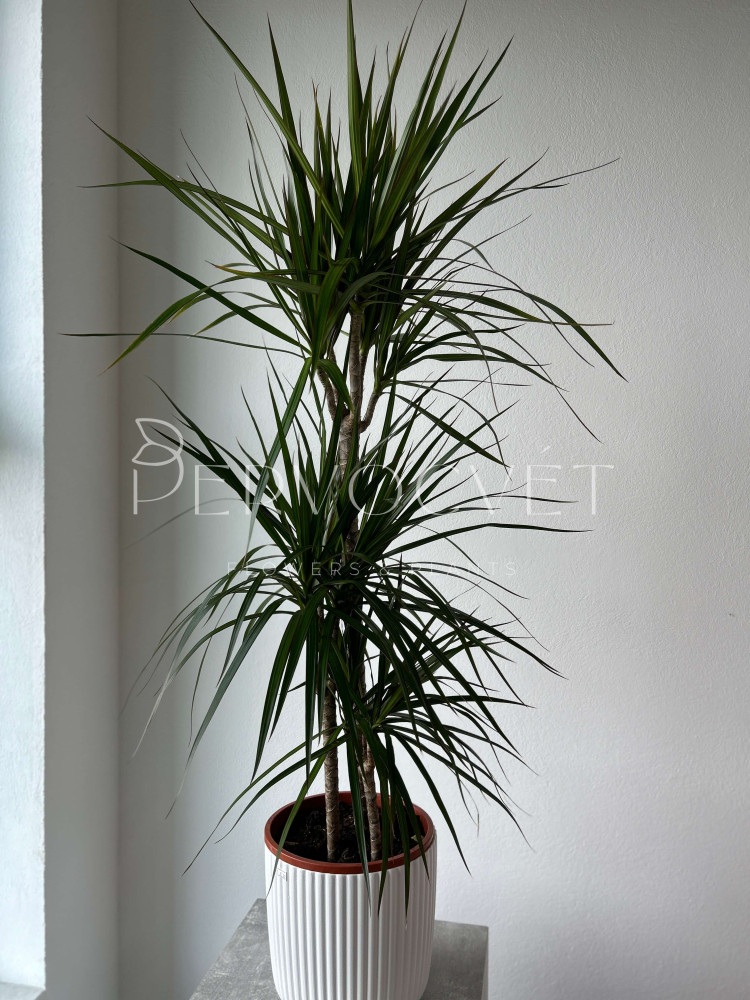 Драцена Маргината, Маджента - род суккулентных кустарников семейства Спаржевые. В домашних условиях выращивают несколько сортов, самый популярной из них - Маргината, отличается прочным древесным стволом с окаймленными шоколадно-зелеными листьями. Растение неприхотливо, прекрасно впишется в любой интерьер от офисных до жилых помещений.
