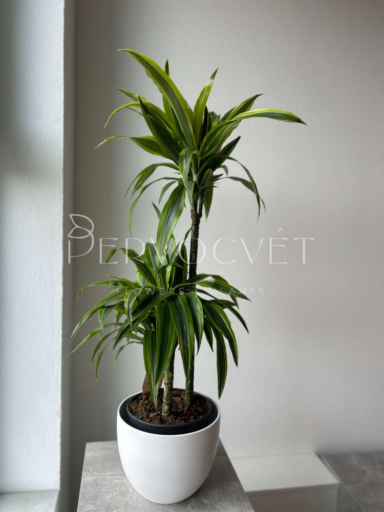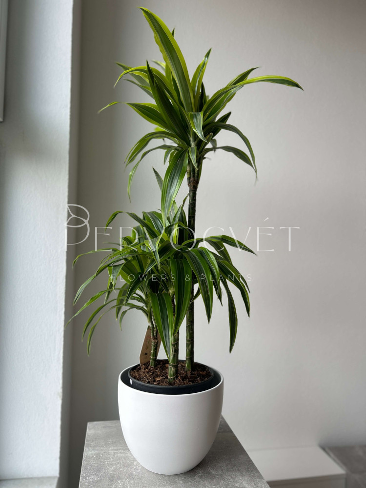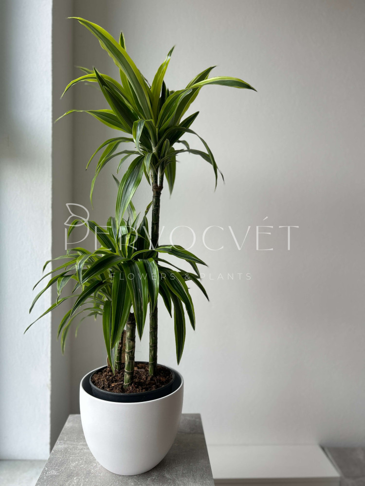 Драцена Лемон Лайм - известная также как "драконовое дерево", такое название появилось в связи с тем, что смола у этого сорта драцен темно-красного цвета и считается, что в этом растении течет кровь дракона. Драцены - очень древние деревья и давно научились приспосабливаться к любым условиям. Растение прекрасно впишется в любой интерьер от офисных до жилых помещений.