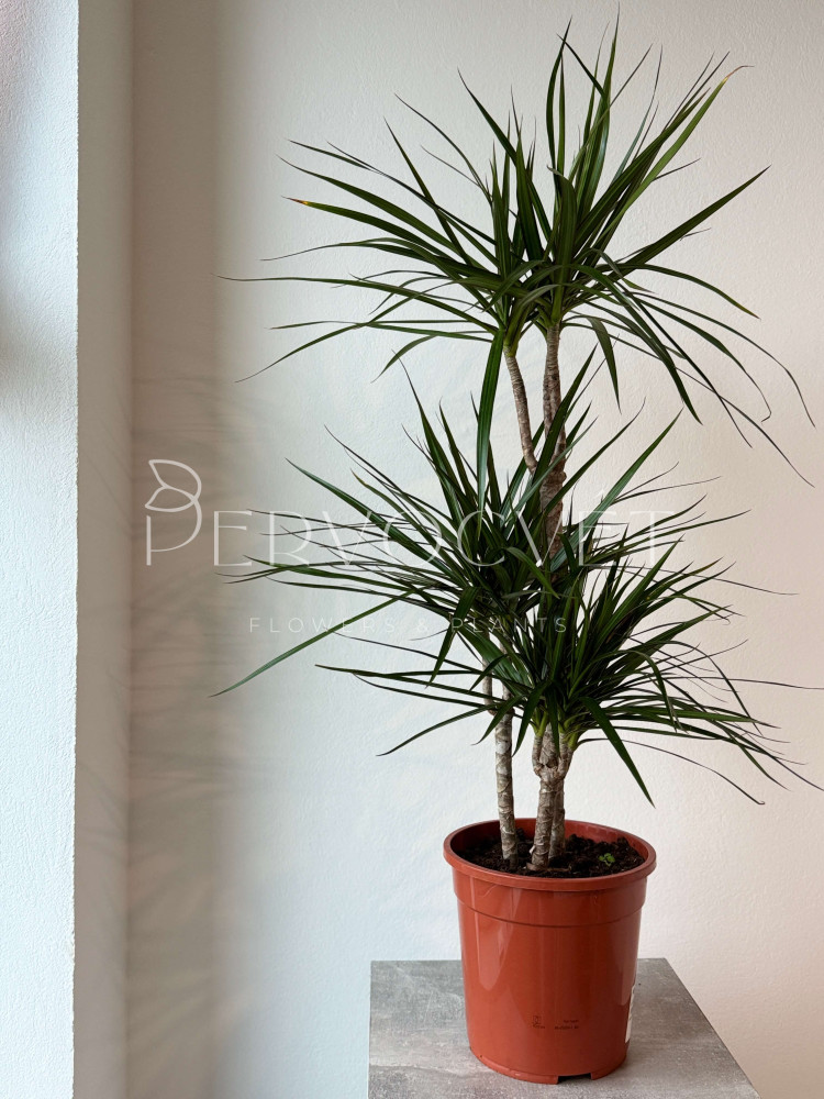 Драцена Маргината, Маджента - род суккулентных кустарников семейства Спаржевые. В домашних условиях выращивают несколько сортов, самый популярной из них - Маргината, отличается прочным древесным стволом с окаймленными шоколадно-зелеными листьями. Растение неприхотливо, прекрасно впишется в любой интерьер от офисных до жилых помещений.