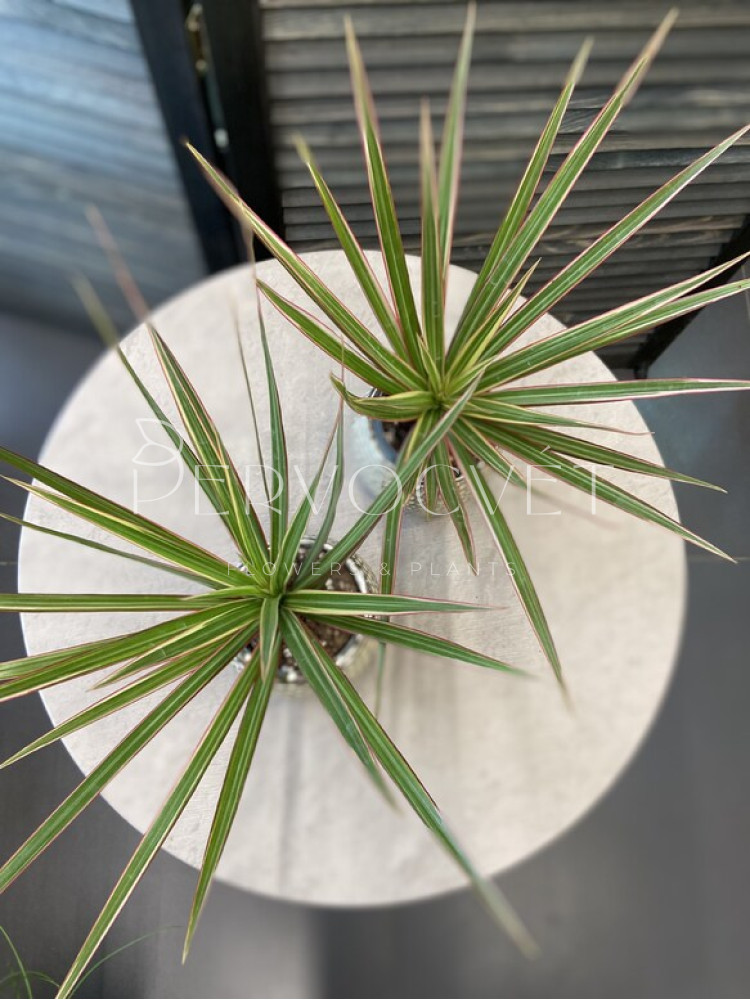 Драцена Биколор - род суккулентных кустарников семейства Спаржевые. Сорт Биколор отличается прочным древесным стволом с окаймленными цветными зелено-розовыми листьями. Растение неприхотливо, прекрасно впишется в любой интерьер от офисных до жилых помещений.