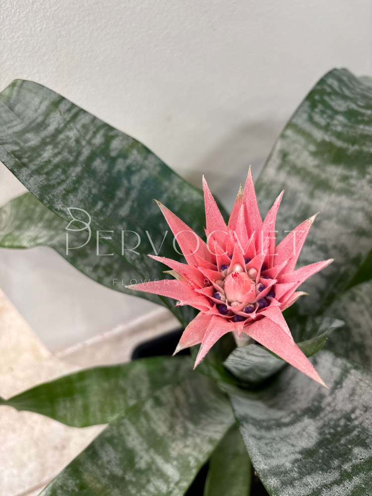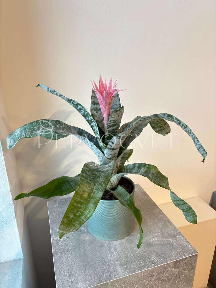 Эхмея - цветущий представитель семейства Бромелиевые, в переводе "наконечник пики", из-за необычной формы прицветника. В дикой природе растения растут как наземно, так и как эпифиты. В комнатный условиях выращивать растение достаточно просто. Плод представляет собой ягоду.