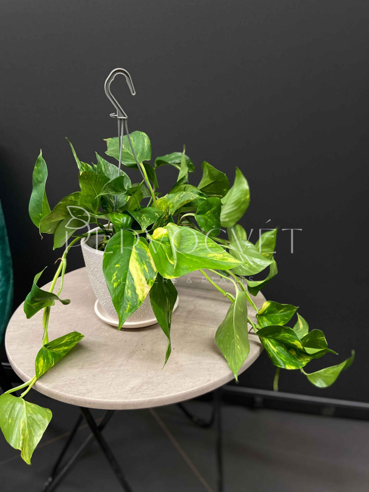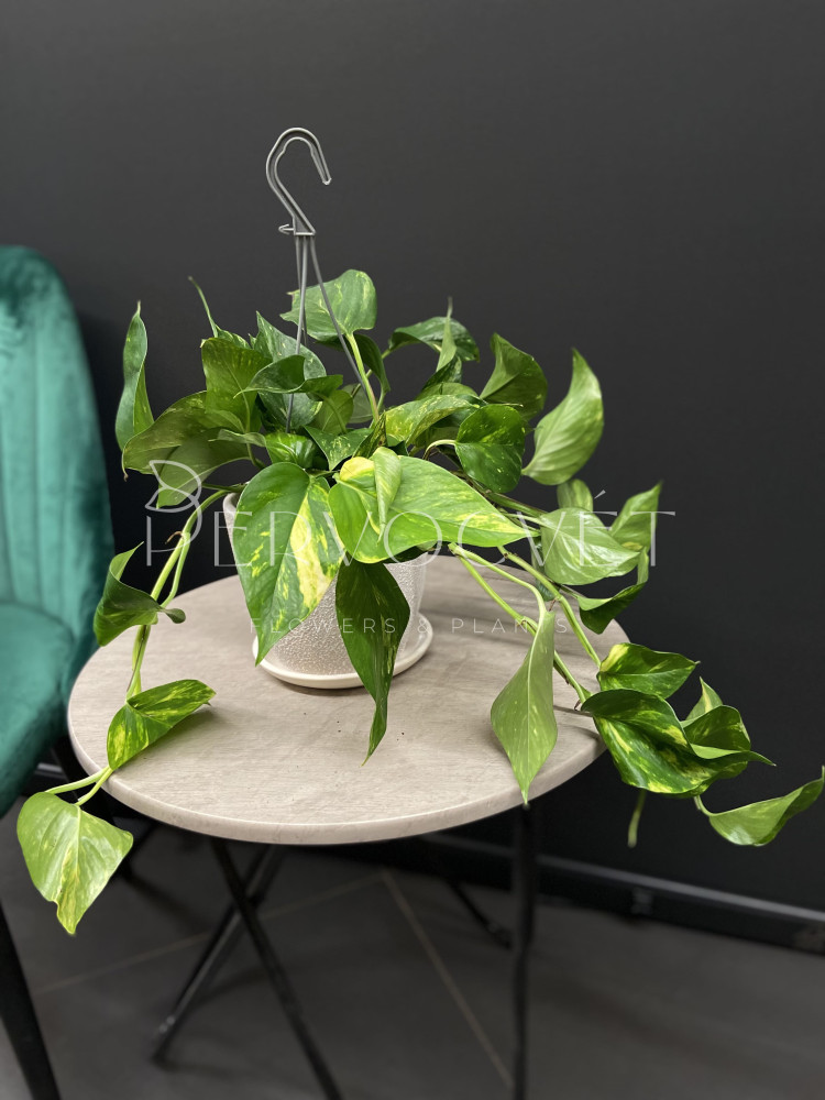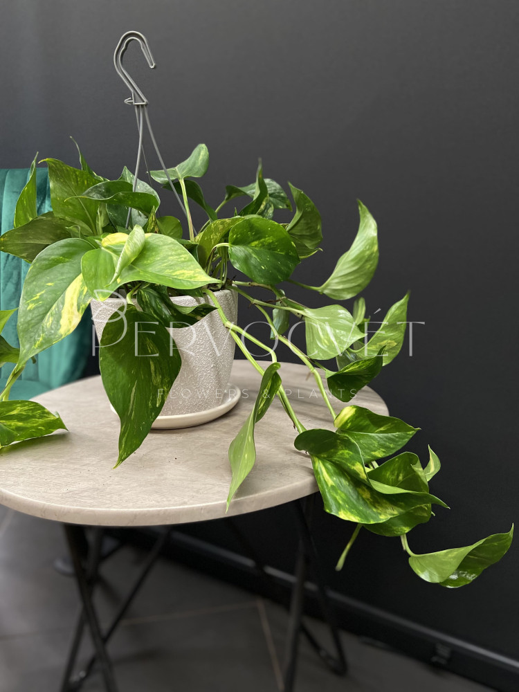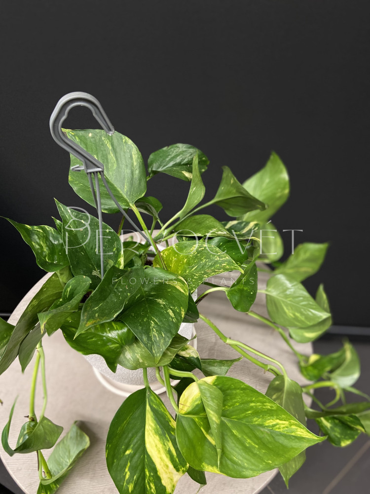 Эпипремнум Ауреум (золотистый) - травянистая лиана семейства Ароидные. Эпипремнум переводится как "на стволах". Полуэпифит может паразитировать на крупных растениях, но также способен цепляться за любые опоры. Простые листовые пластины сердцевидной формы придают растению легкость и игривый характер.