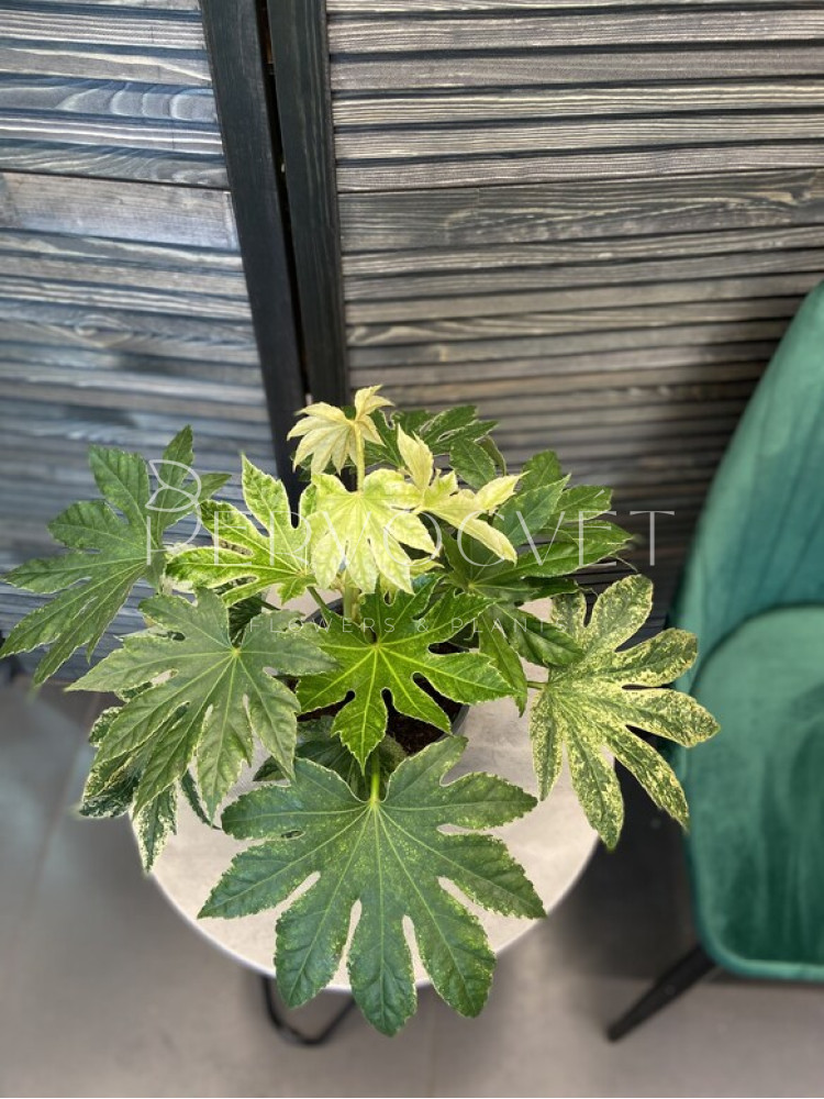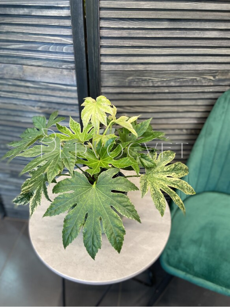 Фатсия Вариегатная, или японский каштан - второе название растения появилось благодаря тому, что листовые пластины растения формой и текстурой похожи на клен либо каштан. Растение неприхотливо, пользуется большой популярностью у дизайнеров интерьеров. Многолетние растение отличается активным ростом, цветение начинается в последние летние месяцы.