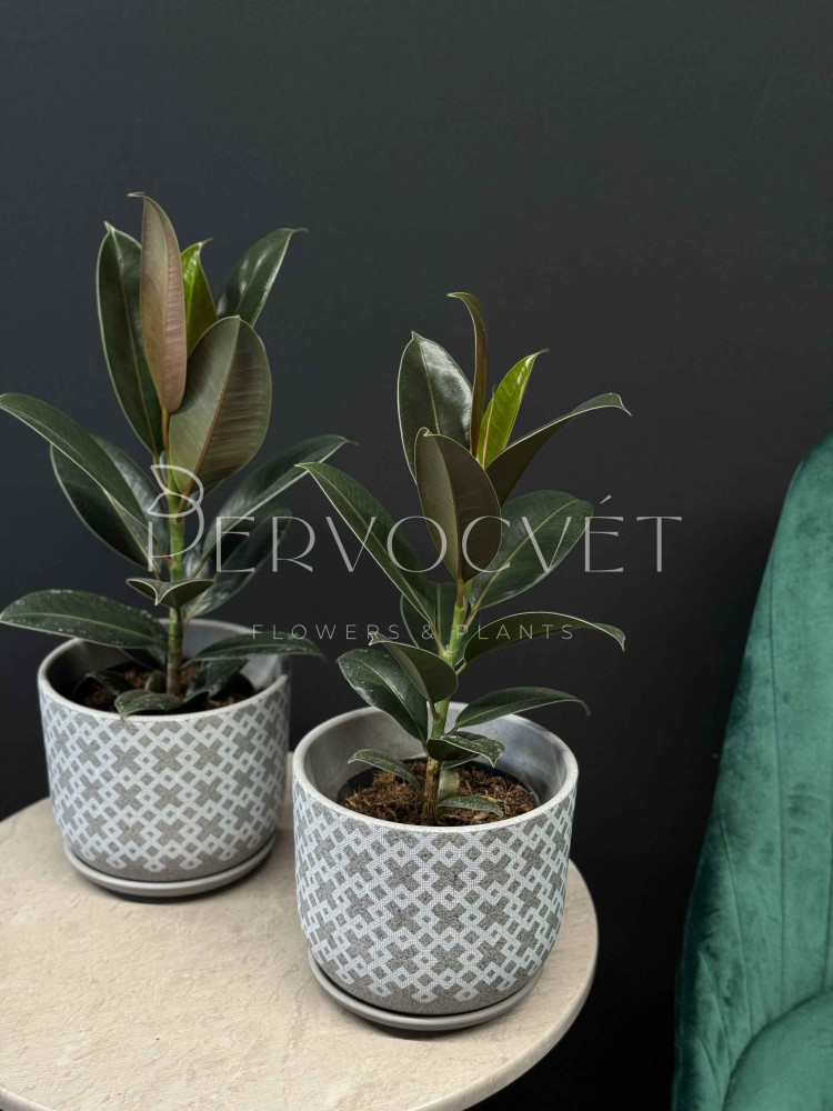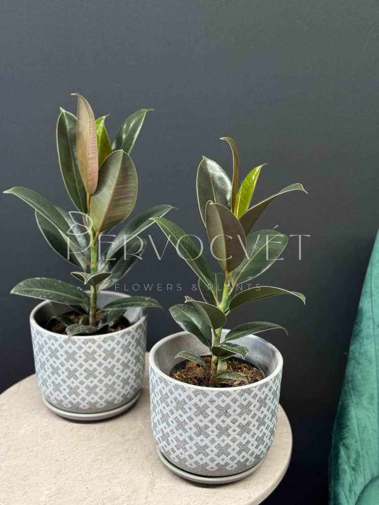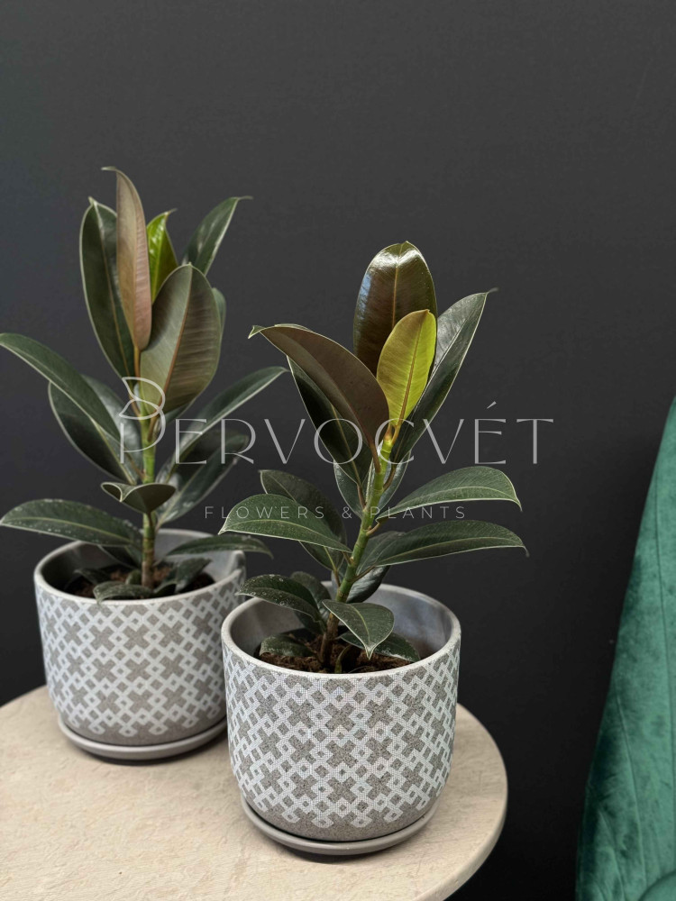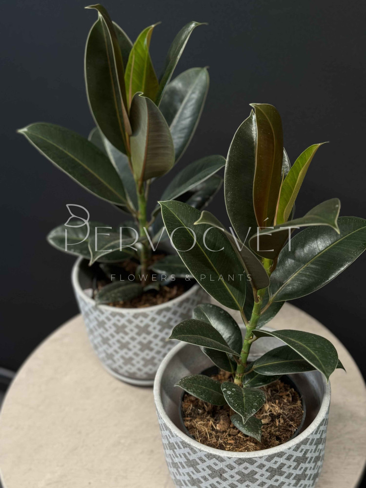 Фикус Эластика (каучуконосный) - вечнозеленое растение, представитель южновосточной Азии. Отлично смотрится в любом интерьере, в т.ч. в офисе. Ранее дикие представители использовались как источники каучука. Сорт Мелани достаточно новый сорт в ботанике, он был выведен из фикуса Эластика Декора. Мелани отличается большей компактностью роста, листья темно-зеленого цвета с красным отливом, обычно до 15 см в длину (у классических Эластик до 25 см).