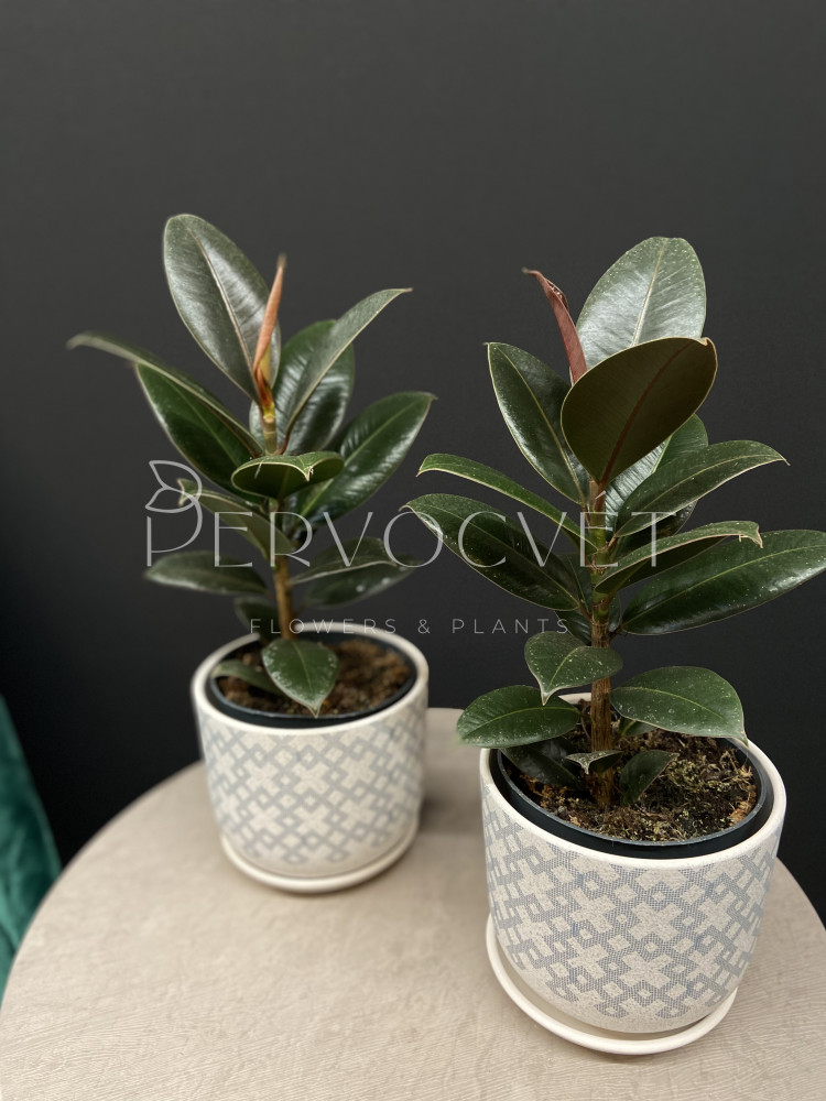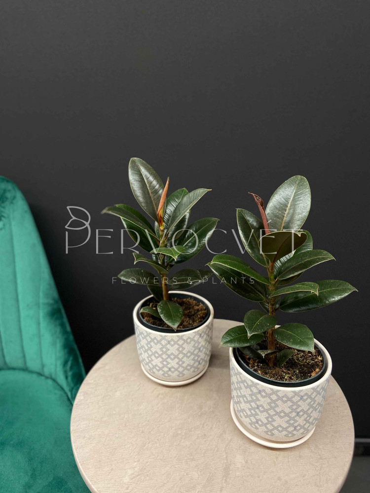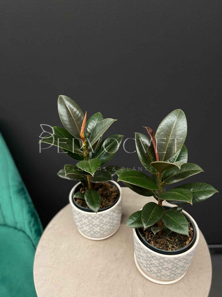 Фикус Эластика - вечнозеленое растение, представитель южновосточной Азии. Отлично смотрится в любом интерьере, в т.ч. в офисе. Ранее дикие представители использовались как источники каучука. Фикус Робуста отличается тёмно-зелёной природной глянцевой окраской листьев крупных листьев.