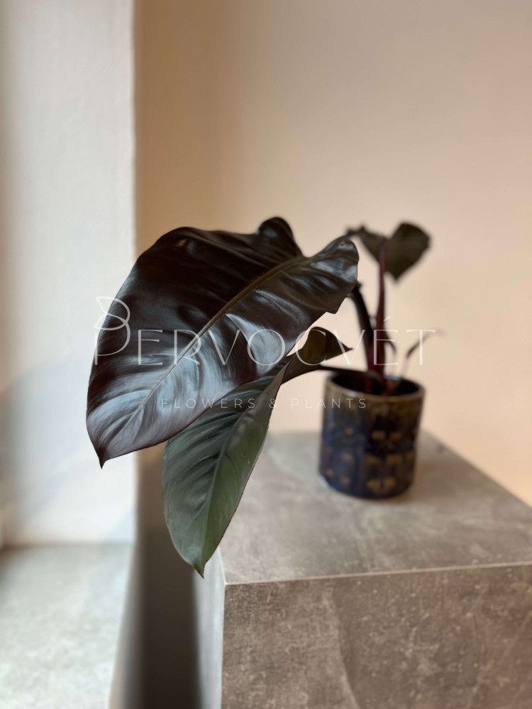 Филодендрон Империал Ред - уникальный Филодендрон, фактурное комнатное растение, отличается от других сортов крепкими, глянцевыми, красновато-бордовыми листьями сердцевидной формы, которые собраны в пышную розетку. Чем моложе лист, тем интенсивнее отлив у листьев и стеблей.
