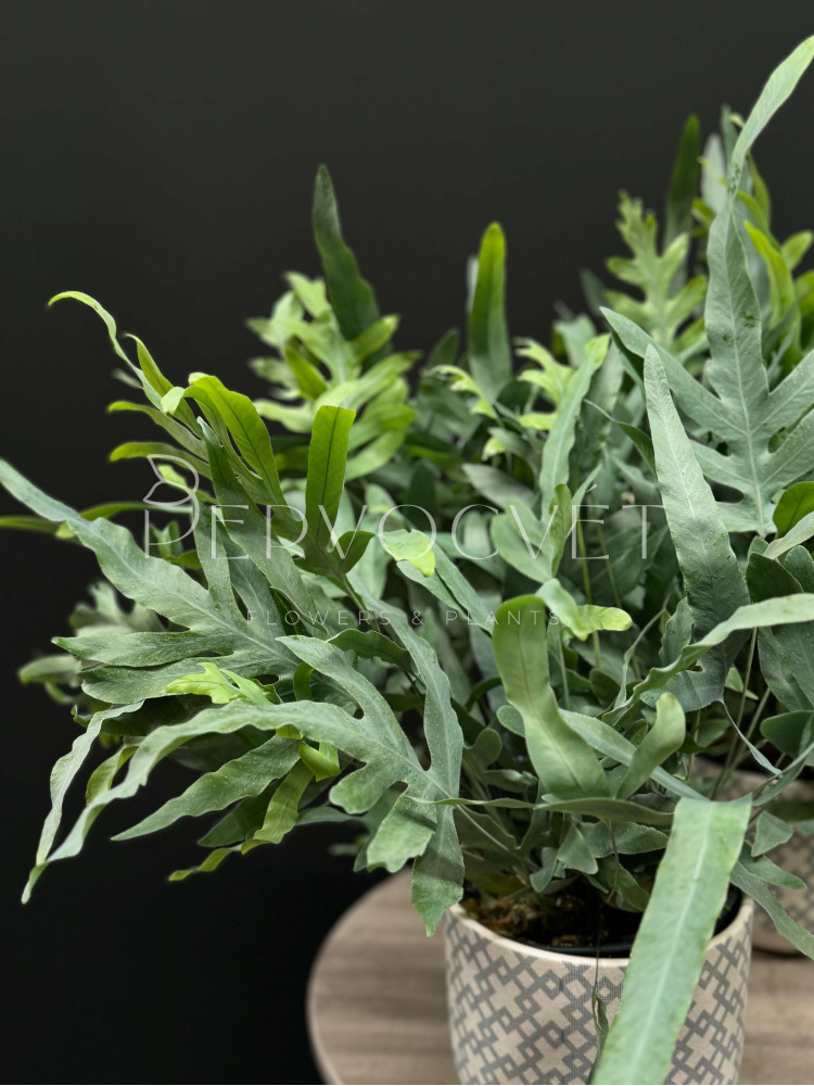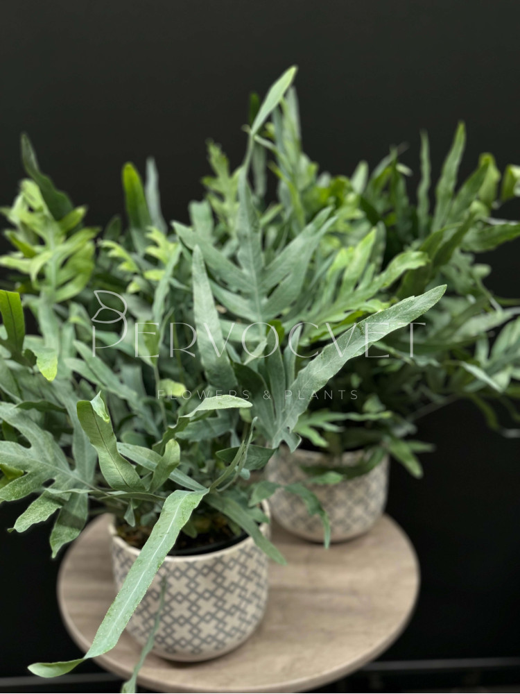 Флебодиум Блю Стар - украшение среди представителей Папоротников. Изумрудно-голубоватые вайи с серебристым оттенком красиво ниспадают, удивляя волнистыми краями. Растение неприхотливо в уходе и высоко адаптивно к комнатному содержанию. В отличие от Флебодиума Давана вайи более рассеченные.