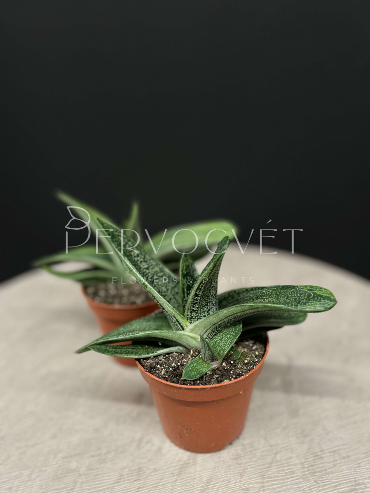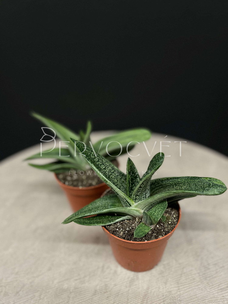 Гастерия - суккулент, родиной из Южной Африки. Относится к медленнорастущим мясистым суккулентам с раскидистым ростом. Литтл Варти (Little Warty - перевод Маленький бородавчатый) - сорт выведенный австралийским гибридизатором. Листья плотные, ярко- зеленые с светло-зелеными полосами по бокам видоизмененных листьев с закругленными концами, и пятнистостью.