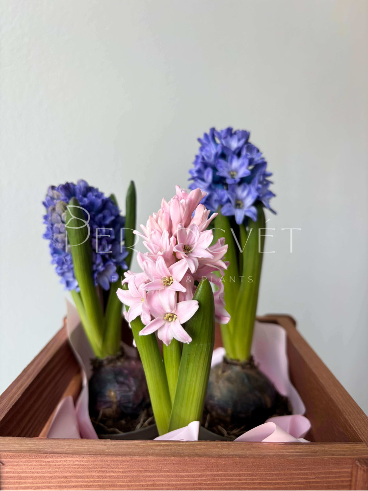 Гиацинт - цветущее многочисленными цветочками луковичное растение из семейства Спаржевые. Цветы собраны в соцветия многочисленных оттенков от белых и розовых до голубых и сиреневых. Самыми редкими считаются гиацинты с желтыми, оранжевыми и красными соцветиями.