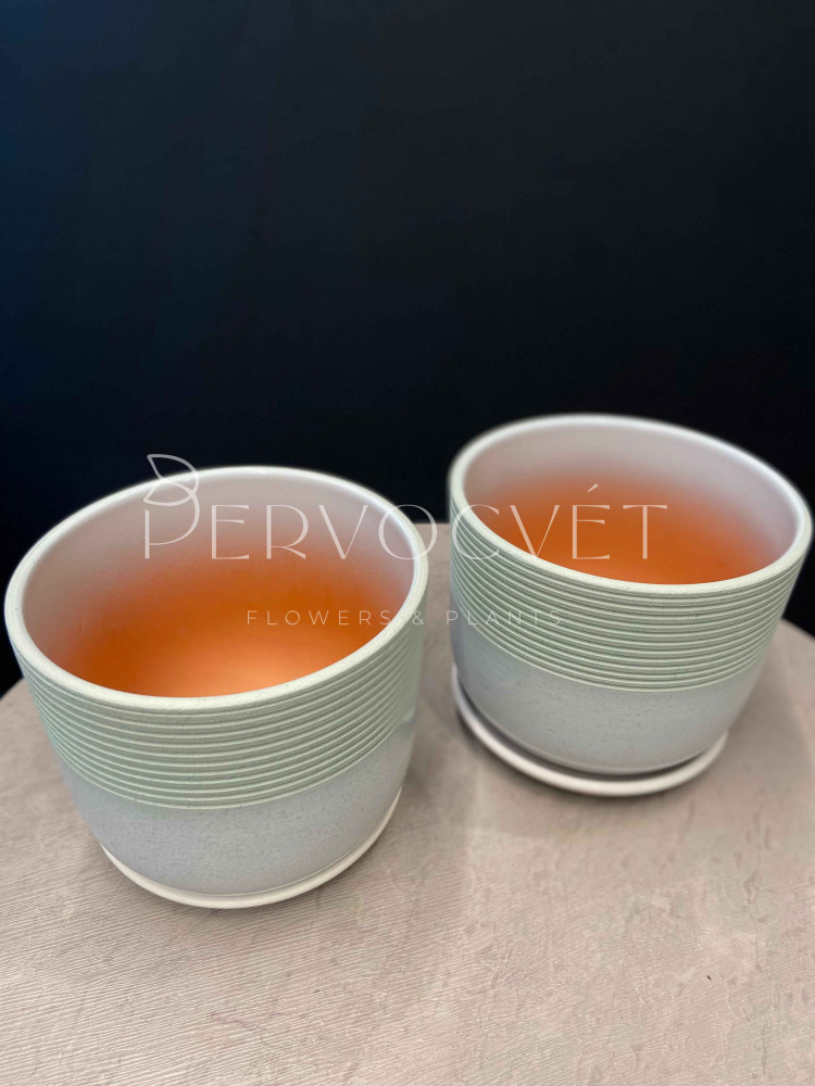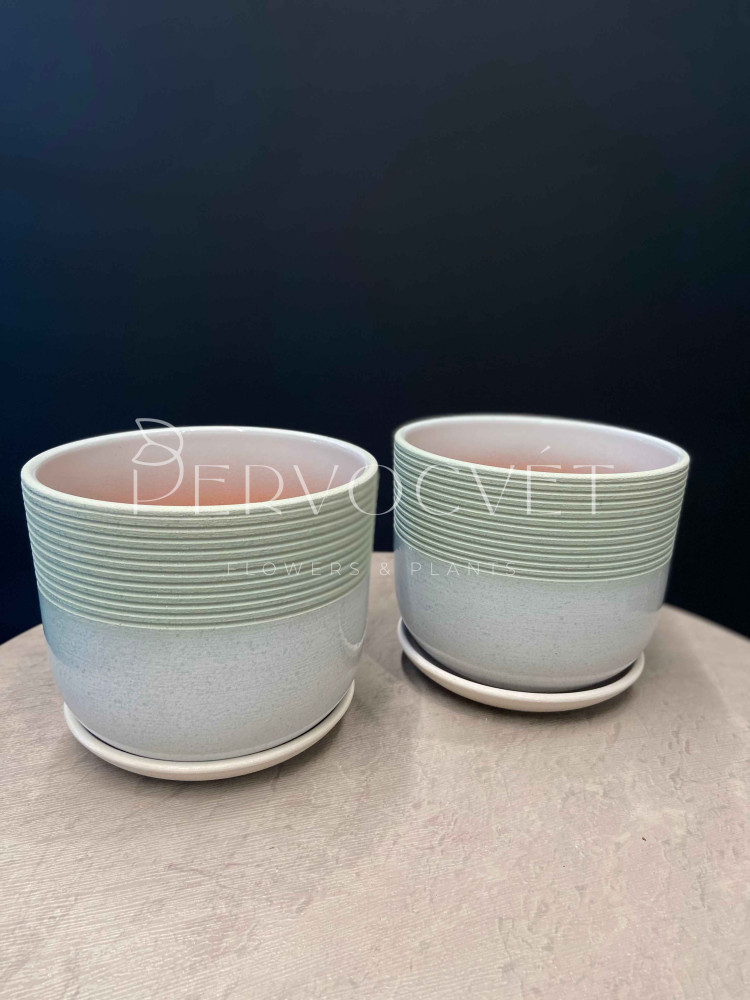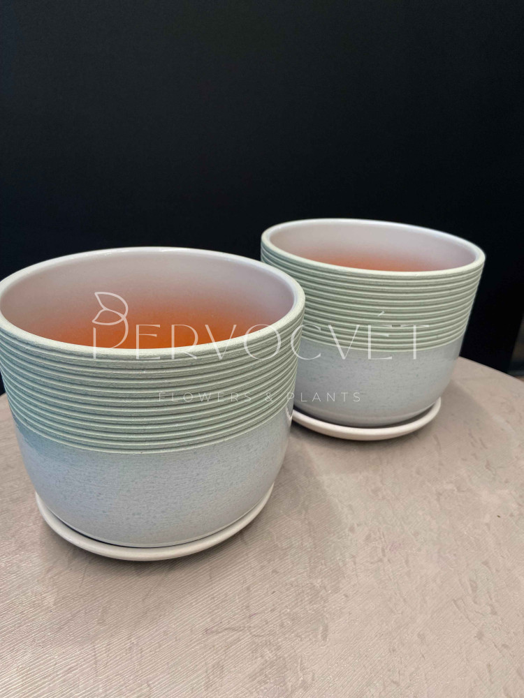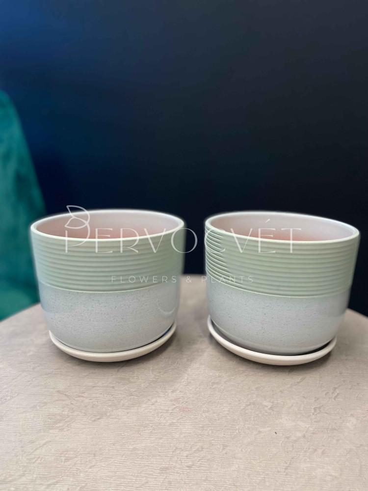 Характеристики: керамический горшок с блюдцем, с рисунком линий на зеленом градиенте