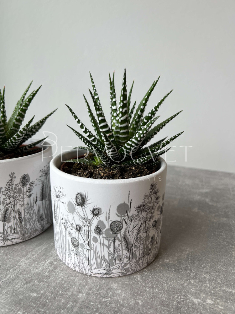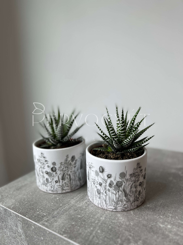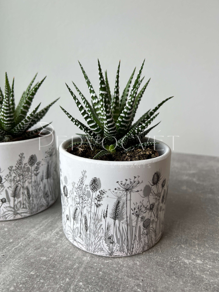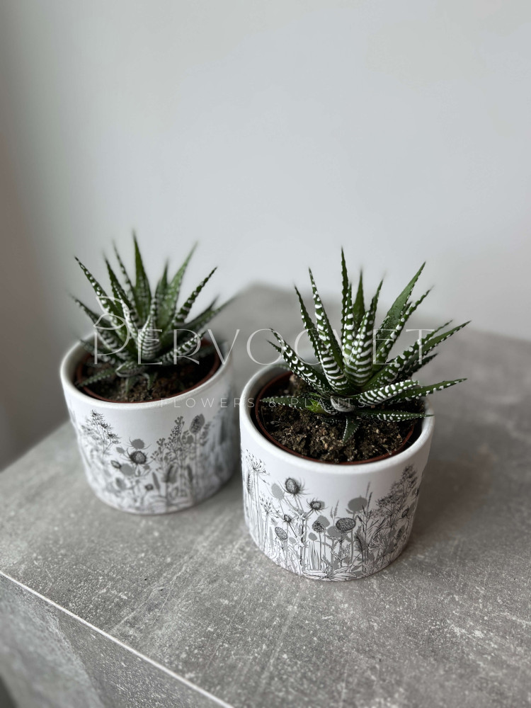 Хавортия - растение подсемейства Асфоделовые. Миниатюрные и карликовые суккуленты названы в честь английского ботаника Эдриана Хаворта. Мясистые листовые пластины различного окраса формируют симметричные розетки, в которых накапливают жидкость на случай продолжительного засушливого периода. Сорт Альба отличается полосатыми бело-зелеными видоизменными листьями, и ценится за декоративность среди любителей суккулентов!