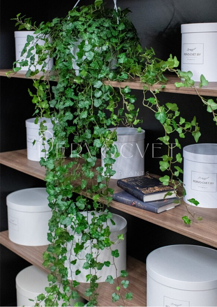 Хедера ампельная (Изящный плющ) - плющ известный еще со времен Древней Греции, где использовался для плетения венков. Неприхотливое растение с минимальным уходом, но при этом потрясающе красивое в любом интерьере.