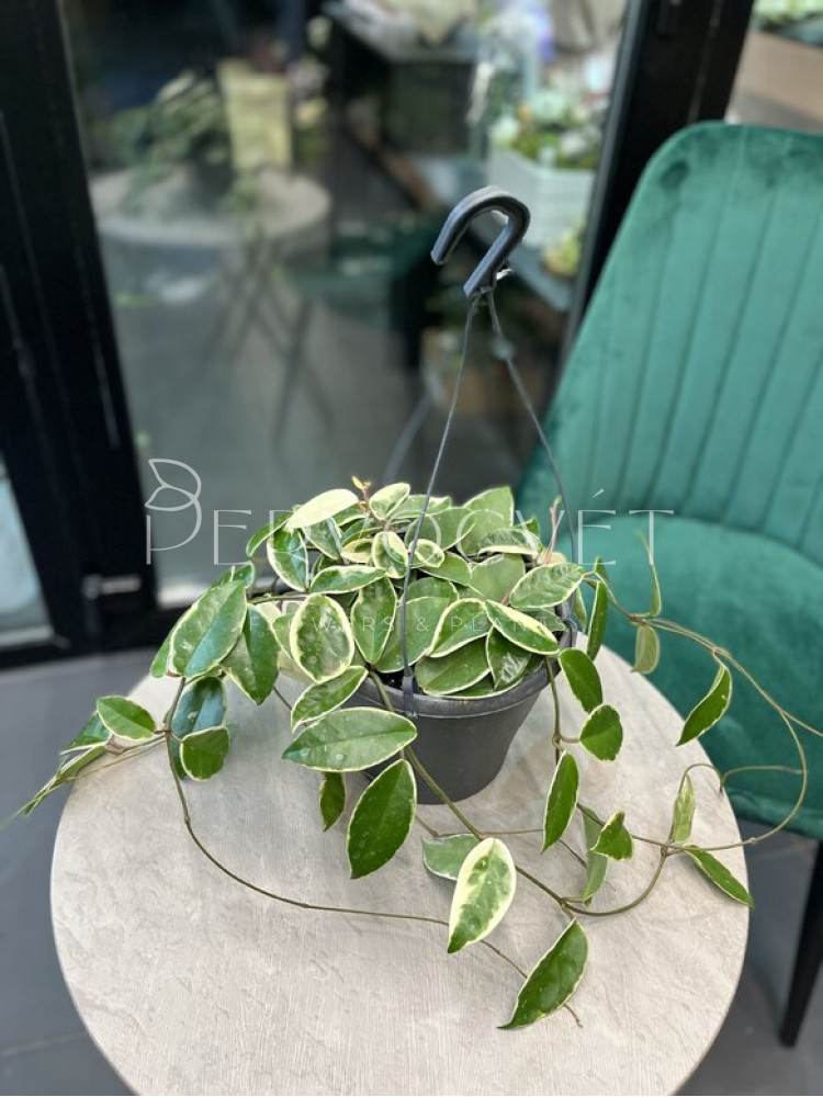 Хойя Кримпсон Квин - вечнозеленая лиана, восковой плющ или изысканная лиана. Эффектный внешний вид создает уют в любом пространстве. В диких условиях произрастает стелясь по каменистым склонам, цепляясь за изредка встречающиеся деревья. В длину может достигать 10 м. Растение отличается абсолютной без вредностью.
