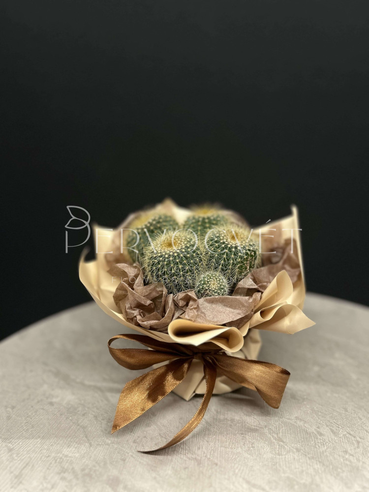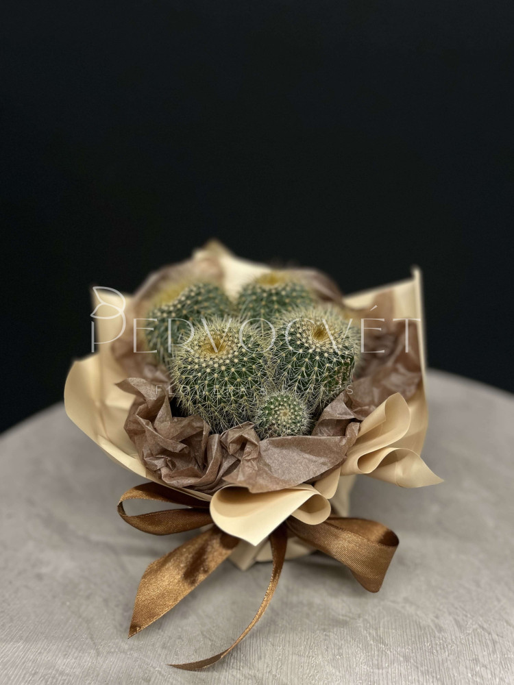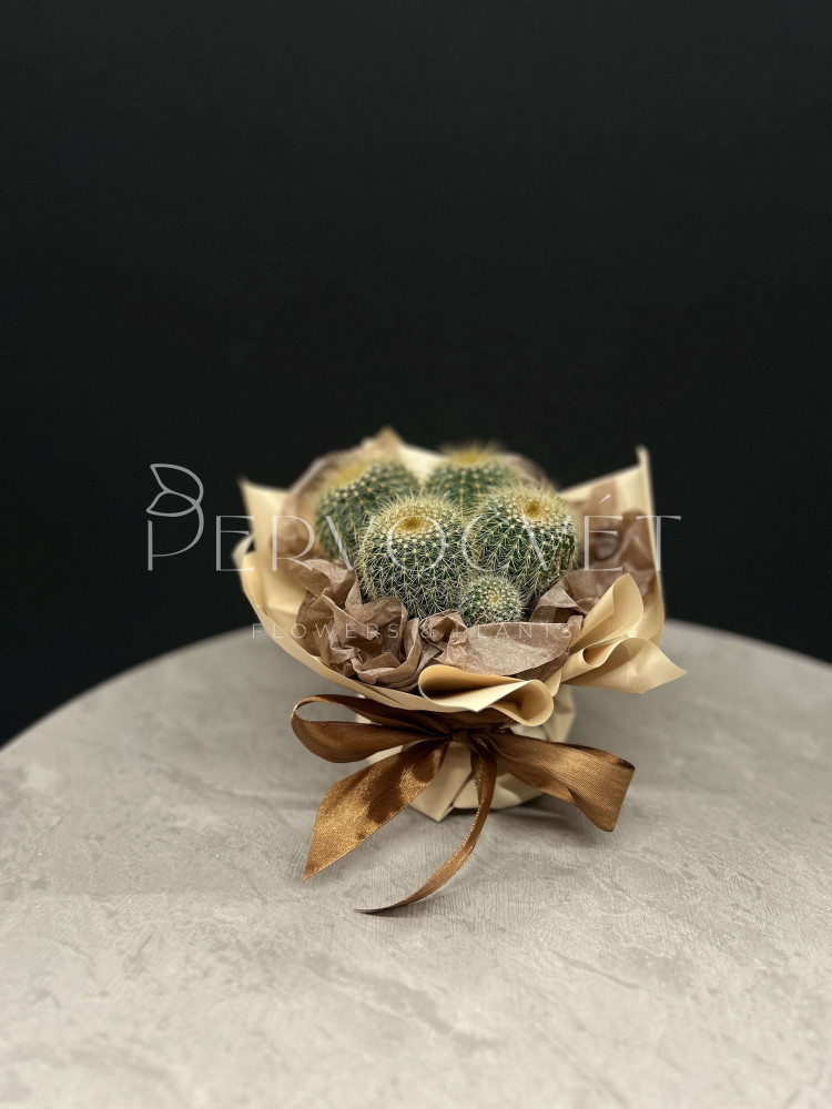 В цветочный набор входит "семейка" или крупный кактус, оформленный в подарочную экологичную крафт-упаковку с лентами. Кактус в наборе из ассортимента в наличии ! Идеальный подарок в качестве комплимента, особенно для любителей кактусов и горшечных растений!