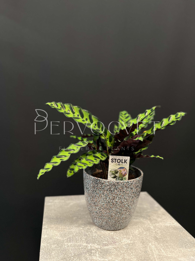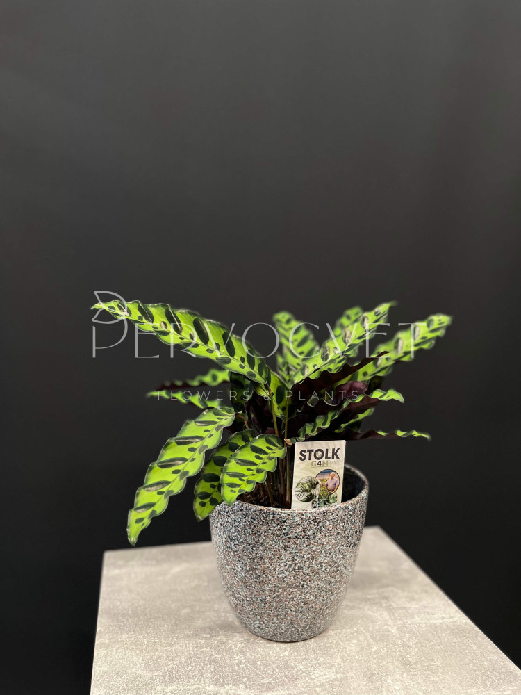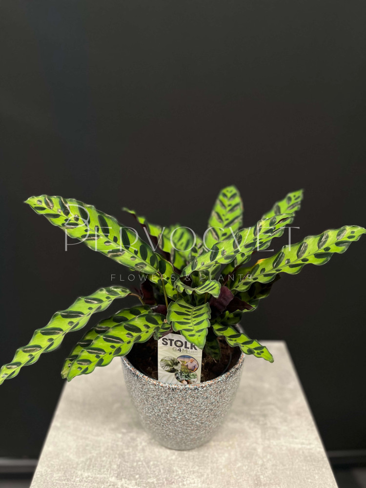 Калатея Лансифолия - представитель семейства Марантовые, ценится за причудливый рисунок листьев. В естественных условиях произрастает в Бразилии (из него плетут корзины, кашпо и изготавливают упаковочную бумагу). Лансифолия - один из самых неприхотливых представителей, однако требует к себе повышенного внимания. Листья имеют вытянутую форму и достигают 70-80см в длину, а рисунок напоминает темно-зеленые листочки на ветке, обратная сторона листа - бурая.