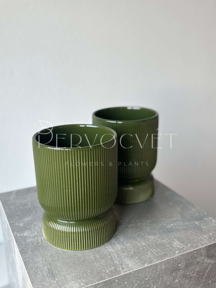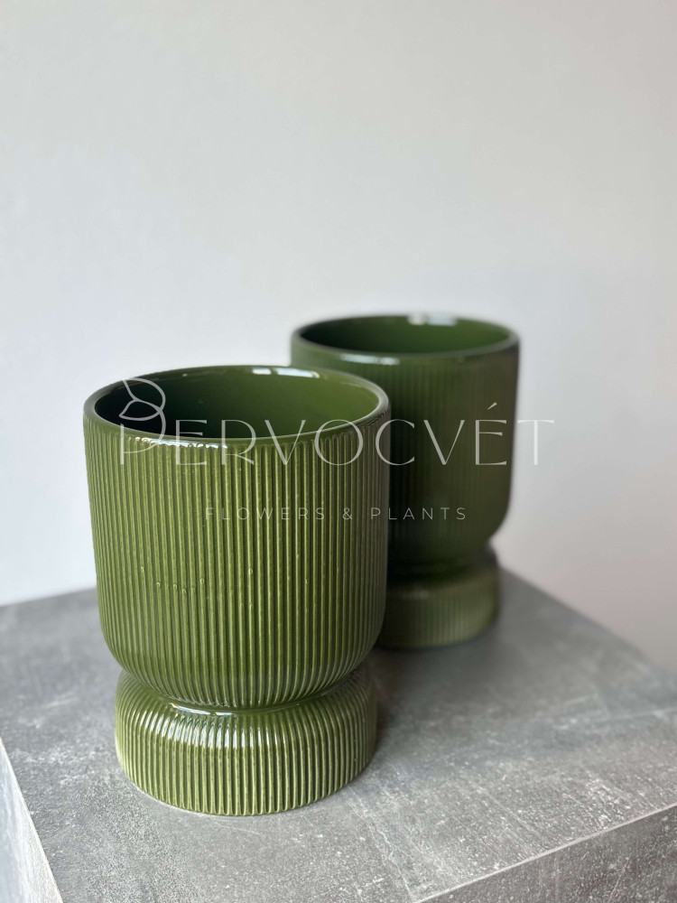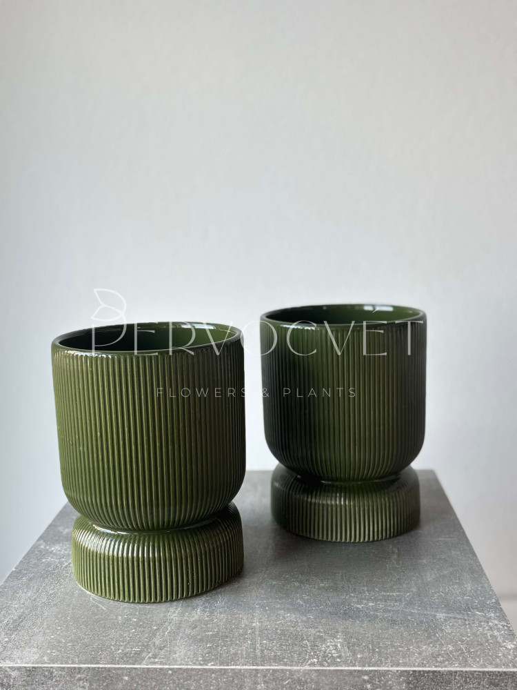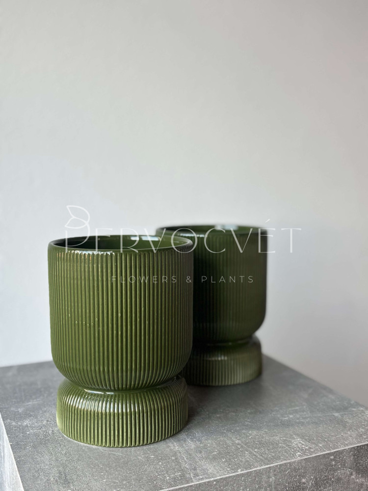 Характеристики: керамическое кашпо, в зеленом цвете, глянцевое в полосочку